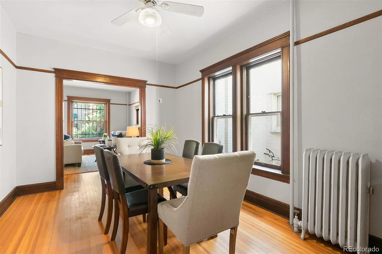 The original woodwork and tall ceilings are just two of the historic features of this charming two bedroom, one bath condo. This Capital Hill Condo features a great layout with a dining room, a bathroom with a new toilet and sink and an updated laundry room that has new plumbing and electrical. Plus the washer and dryer stay! This rare unit also has a one-car detached garage and room for storage. 2 blocks to Cheesman Park and all that CapHill has to offer-restaurants, BotanicGardens, museums, and much more.