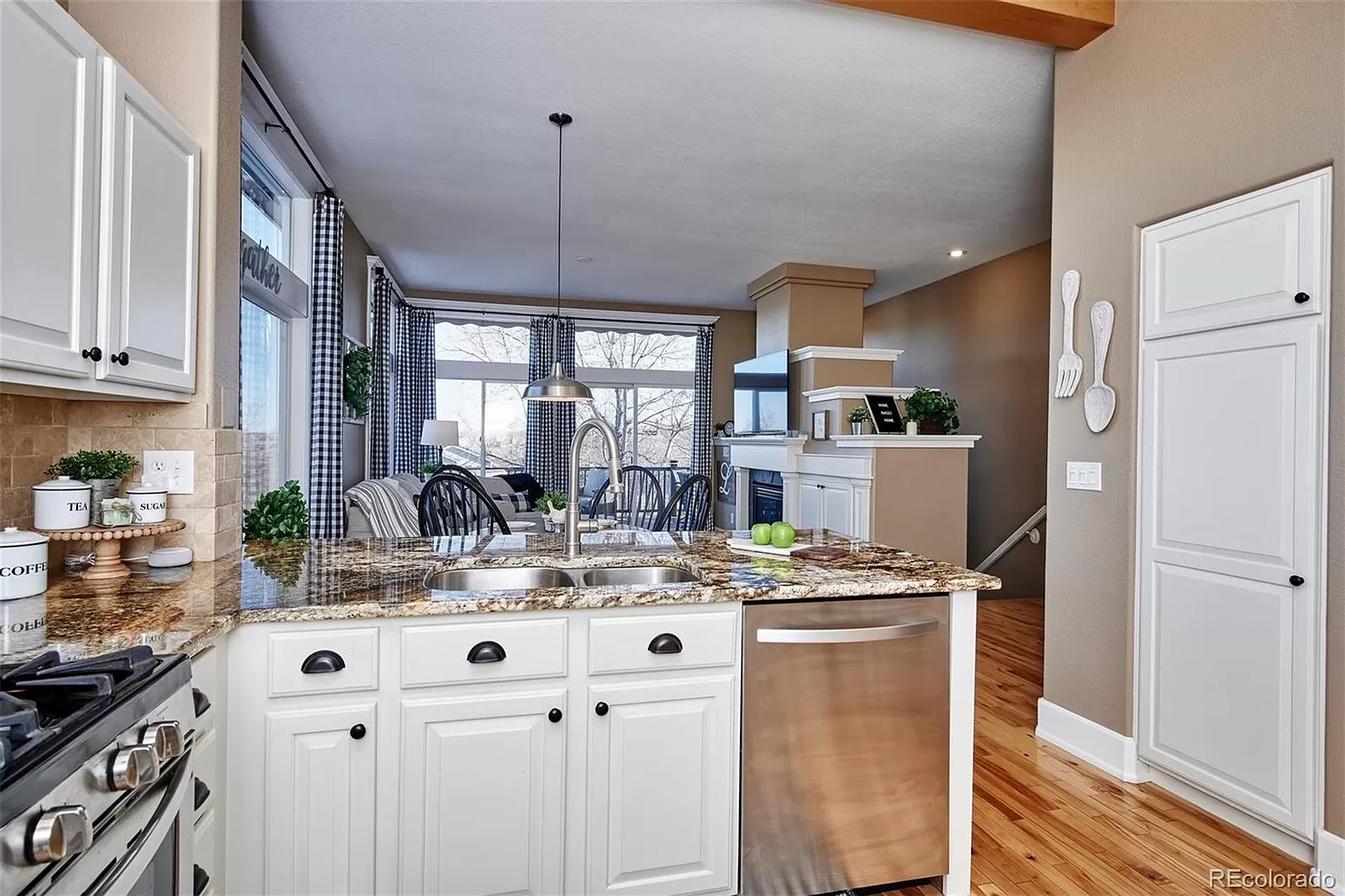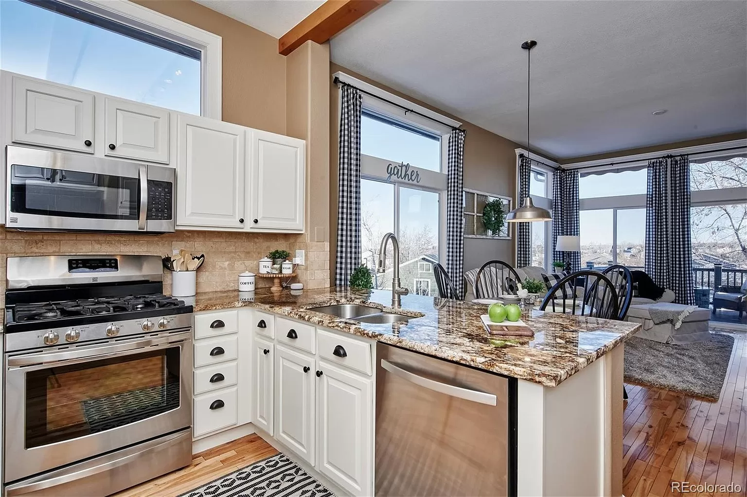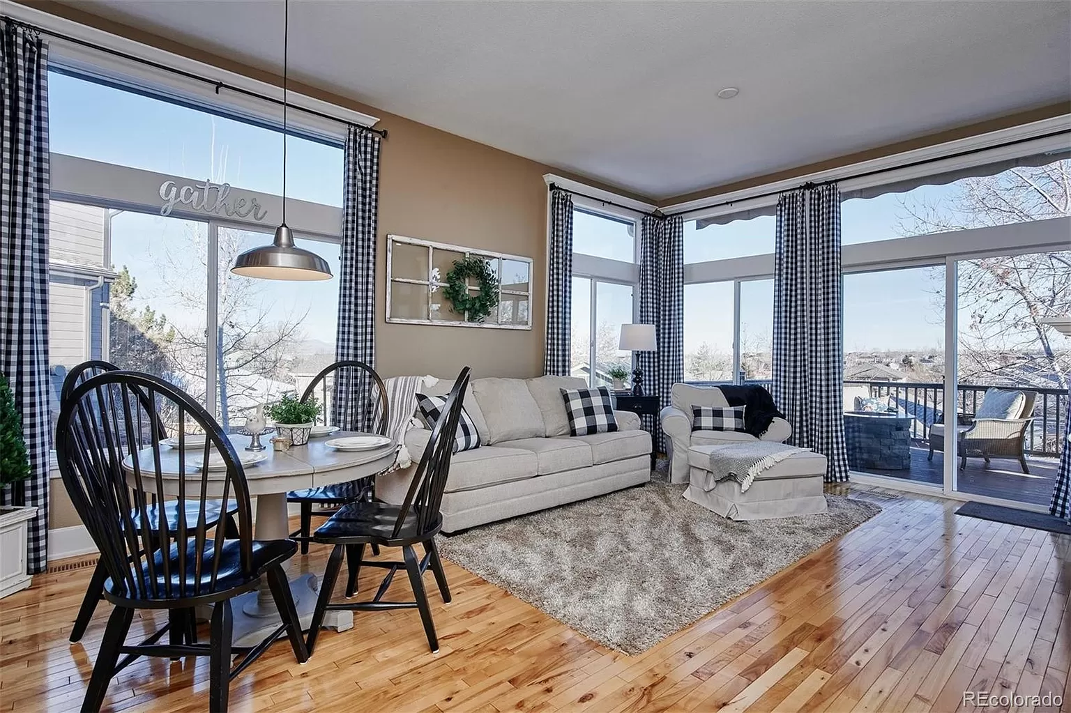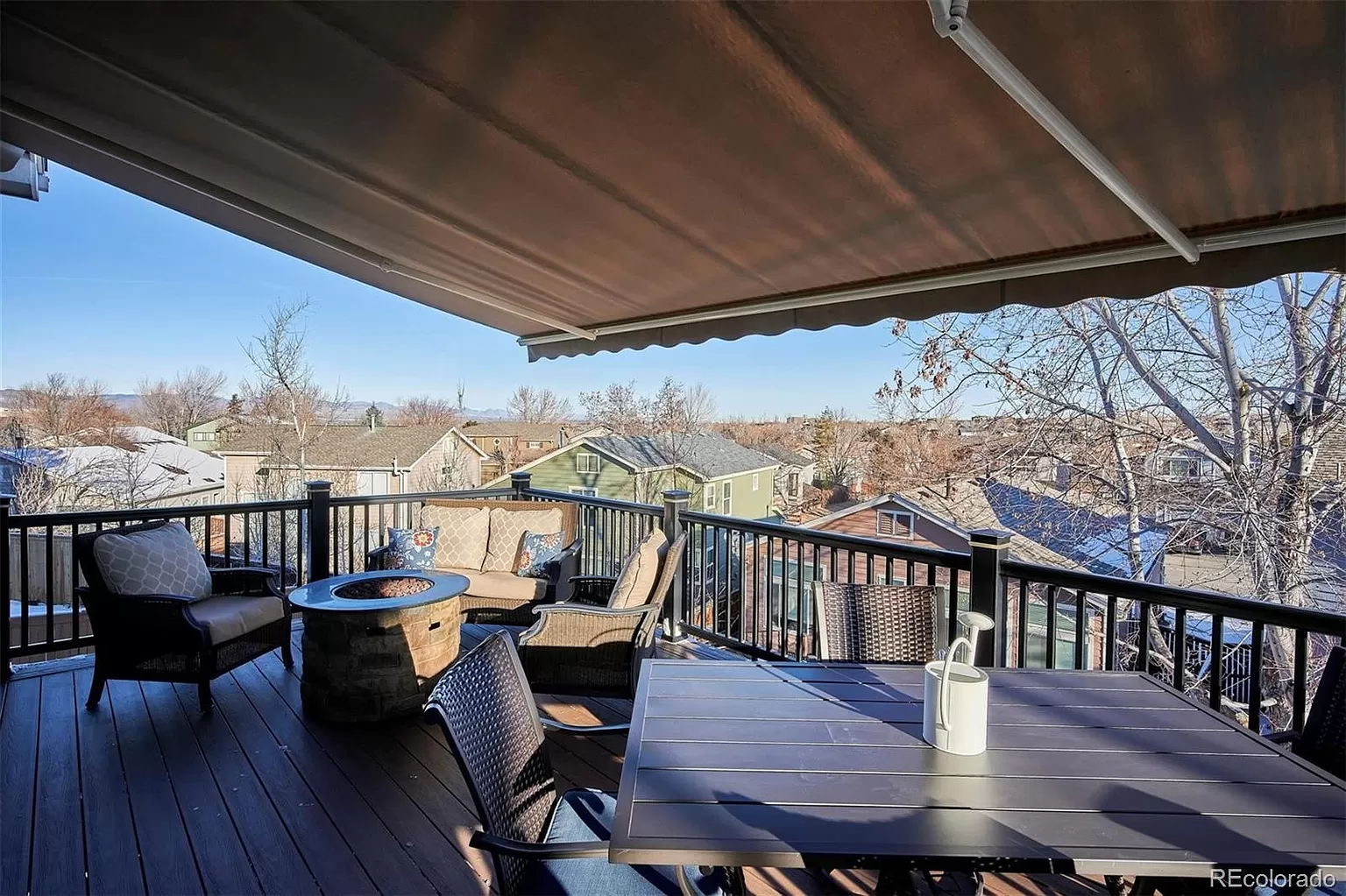 Desirable RANCH style home in the heart of Highlands Ranch. End of culdesac, walkout, views! Cozy and open floorplan full of natural light. Former home of a craftsman features gorgeous white millwork: shiplap, crown molding, custom window casings, 6" baseboards, built ins, closets. Kitchen with stainless, granite, pull outs in pantry; open to dining/living room with huge windows, gas fireplace. The expanded deck is an extension of the living area, you will enjoy mountain and city views (the perfect spot to watch sunset or summer storms); stay cool with the retractable awning. Owners suite with wood floors, custom closet wall, ensuite bath, more mountain and city views. Walkout basement with large family room, bedroom, 3/4 bath/laundry and tons of storage. Also: retractable screen door from garage to kitchen, solar shades on west side; new blinds, lighting, shower glass; home warranty thru mid Nov 2021. Close quick on this meticulously maintained gem! Will not last! All appliances stay Spotless.