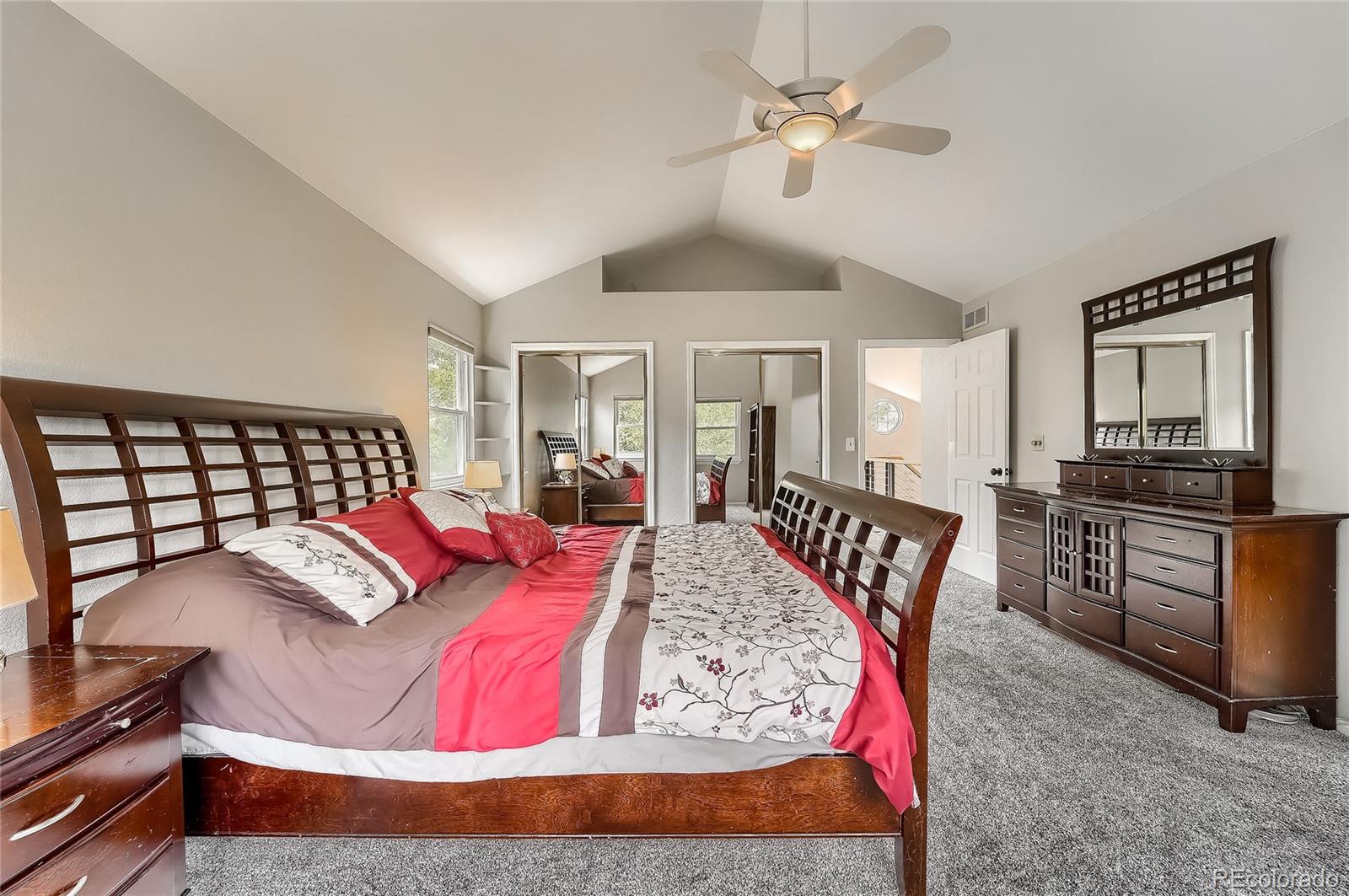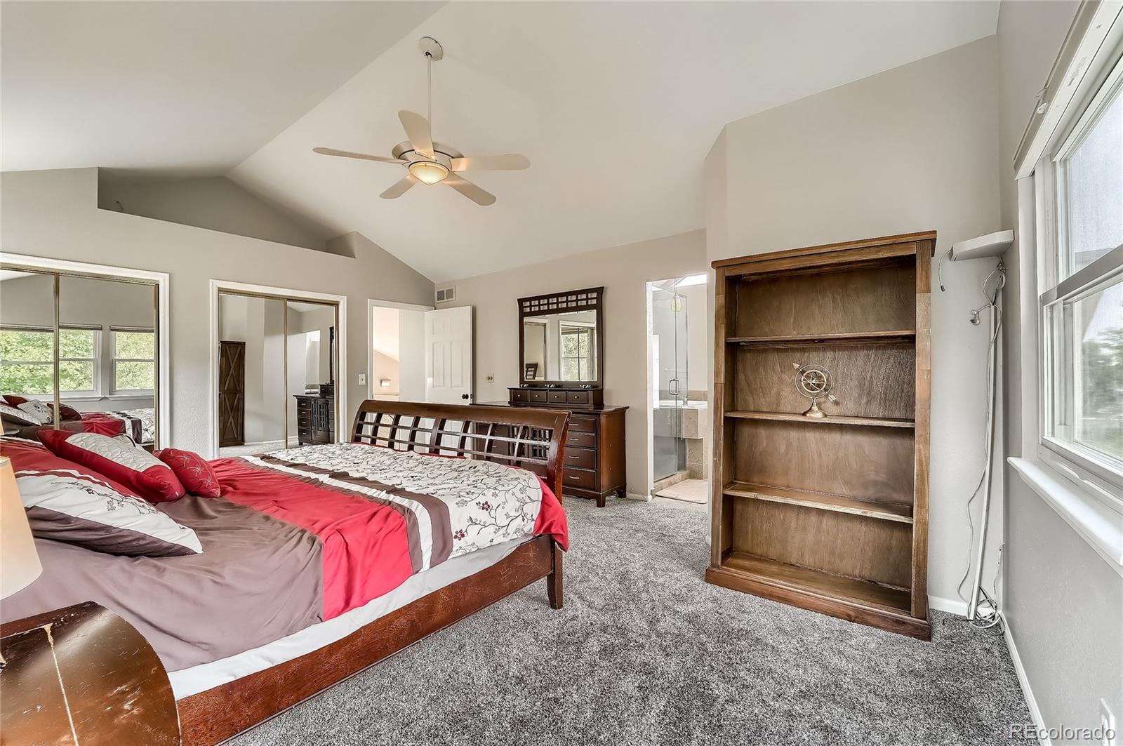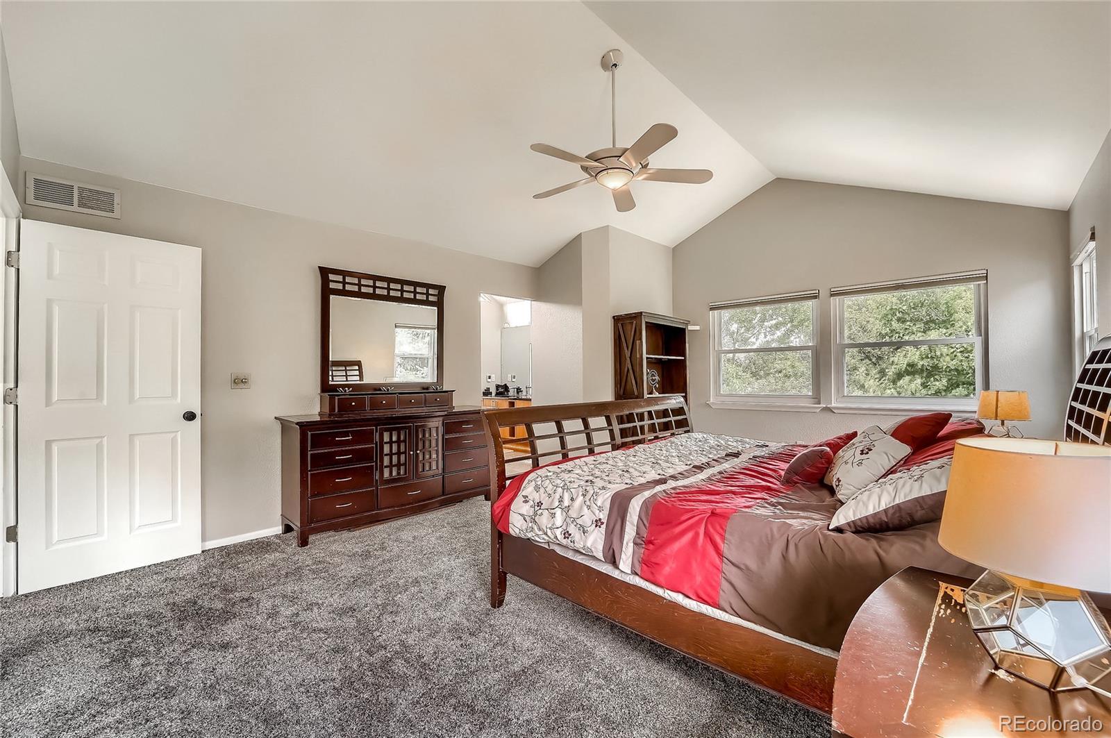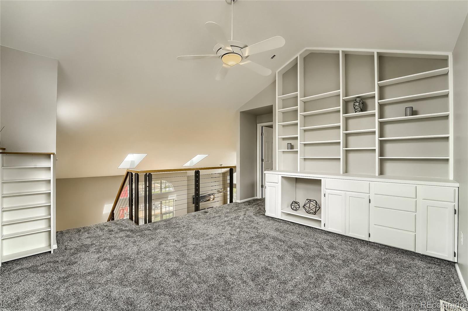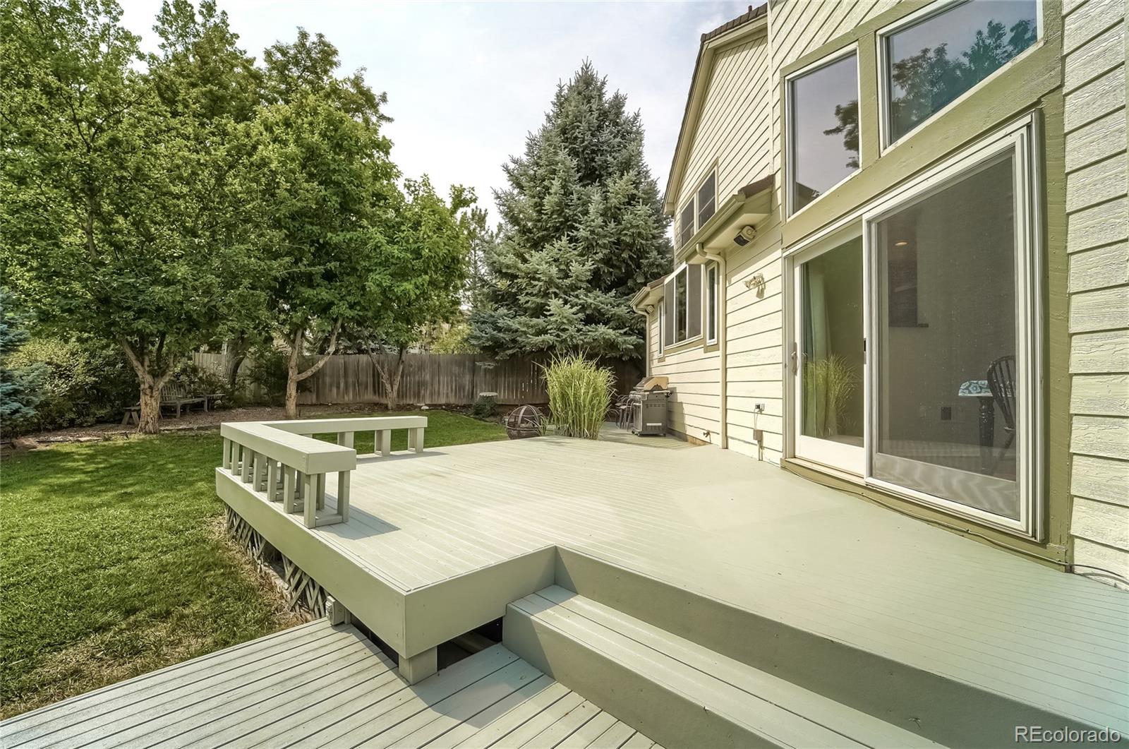 Fantastic Home in sought after Hunter's Glen! Sunlight gleams through the interior bound by cathedral ceilings and an open floor plan. Great sun room perfect for enjoying a cozy meal or cup of coffee with views from the slider to the large outdoor deck surrounded by a professionally landscaped back yard. Home backs to green belt too! Wood floors throughout main level. NEW carpet throughout. NEW Fresh and Stylish interior paint. Large kitchen with wine fridge, stainless steel appliances, easy maintenance Corian tops, and lots of light! Private upper level master bedroom with full master bath including Japanese soaking tub, bamboo cabs, and granite tops. Large loft/office area just outside master perfect for an office or space to relax. Contemporary cable railings lead you down to the main level where you find two bedrooms and full bath. Separate dining area next to sun room. Large Finished basement boasting great sunlight too. Additional bedroom and full bathroom make this a great guest area or private area. Large two car garage with additional shop area. Check out the back yard as it is private with lots of great areas to sit and read/relax covered by shade trees.