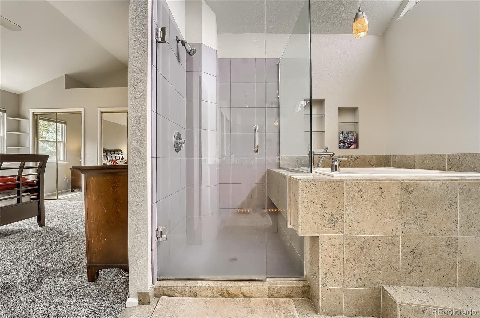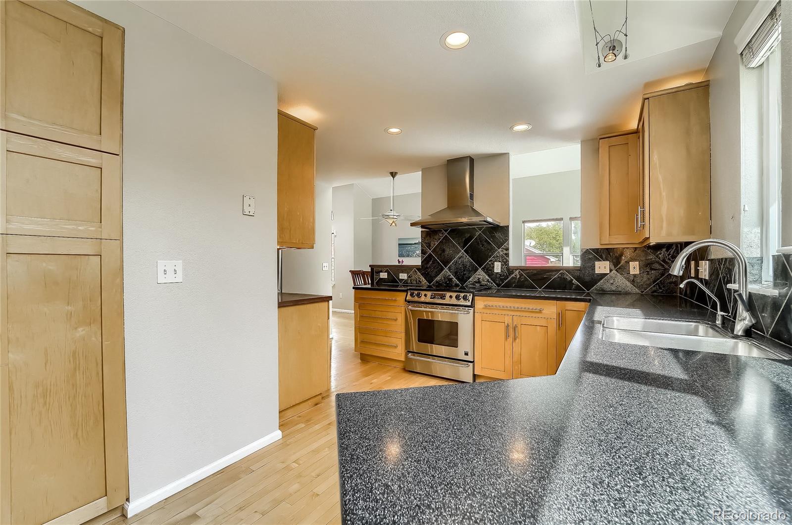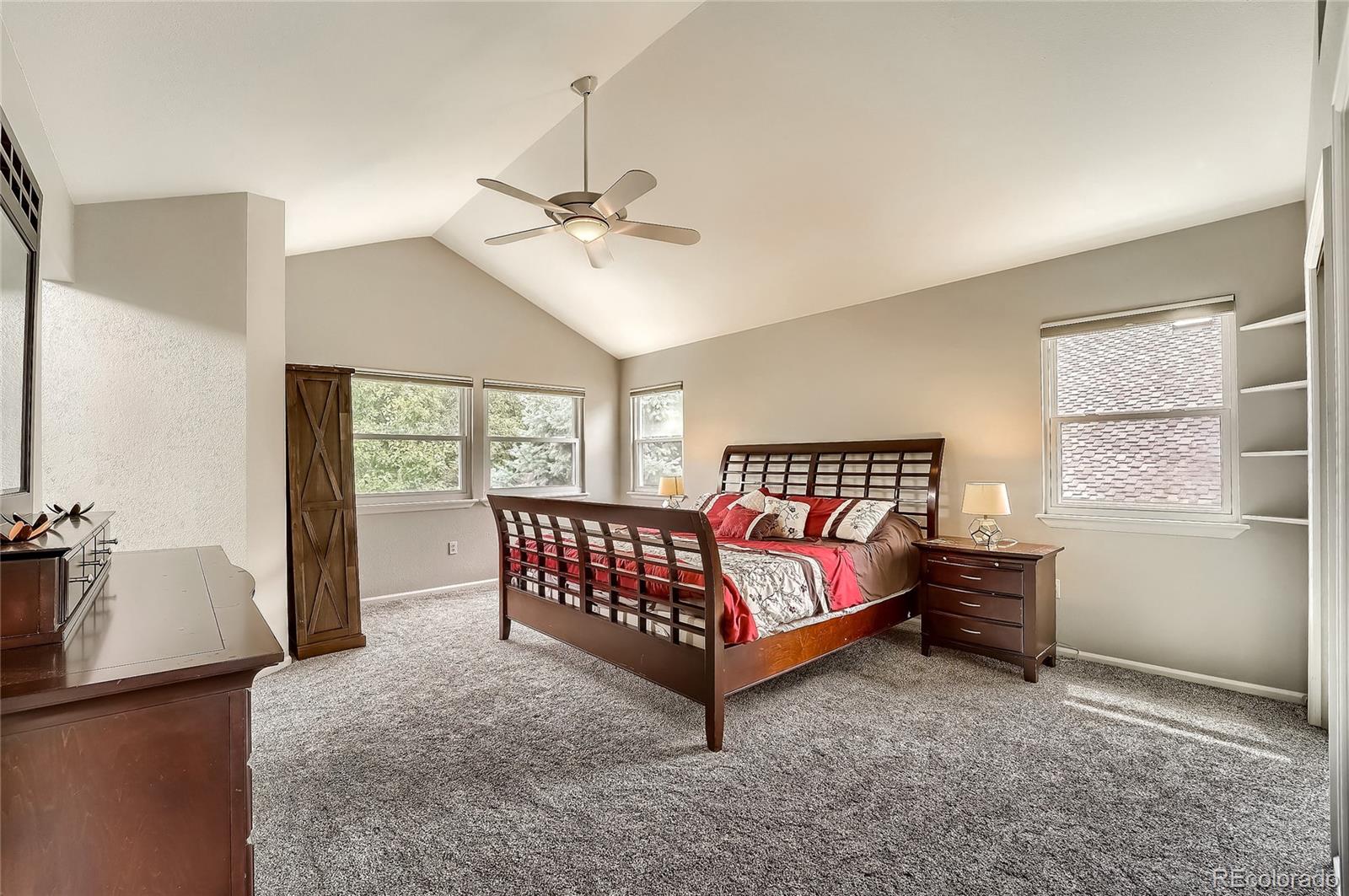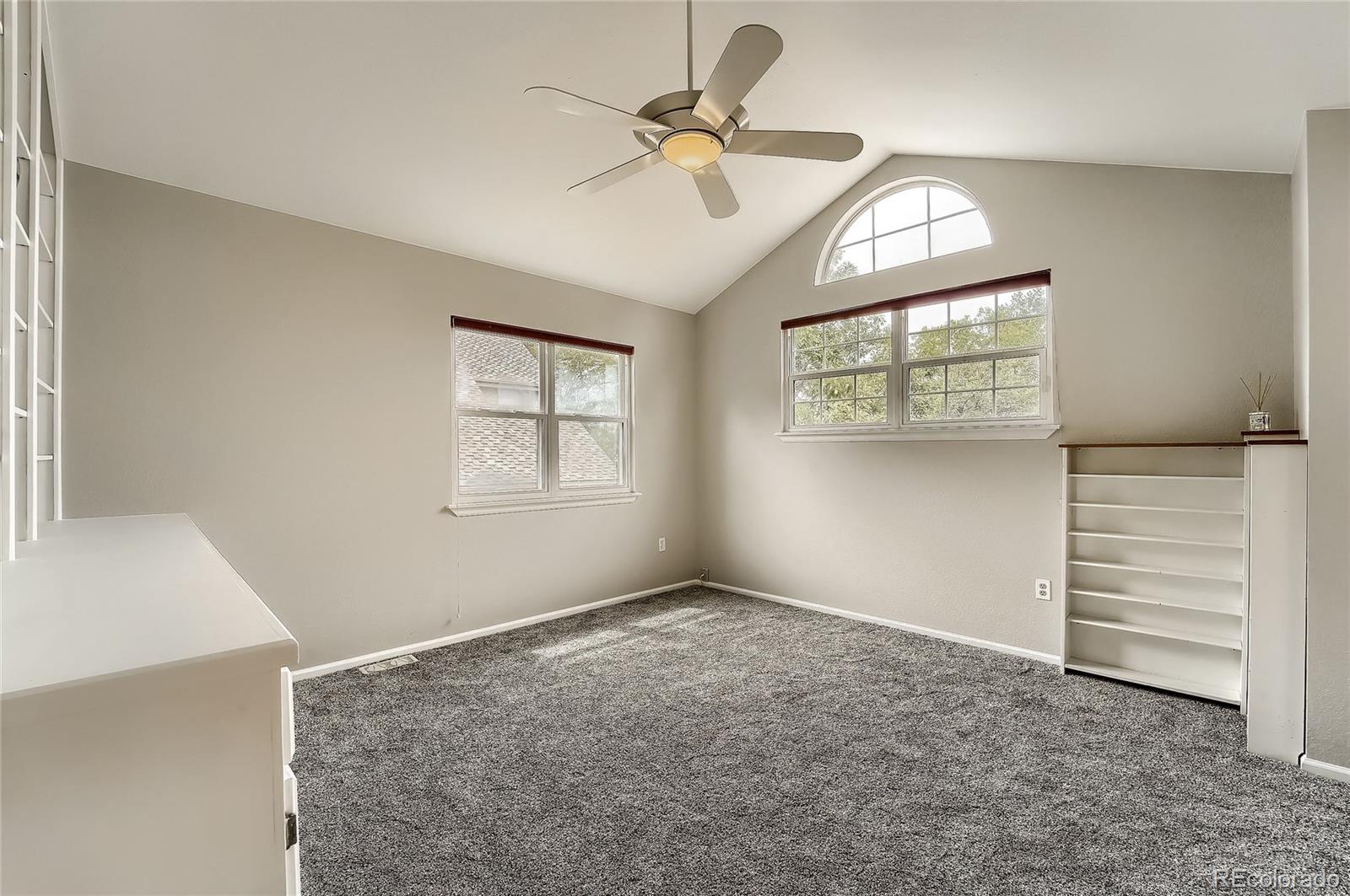 Fantastic Home in sought after Hunter's Glen! Sunlight gleams through the interior bound by cathedral ceilings and an open floor plan. Great sun room perfect for enjoying a cozy meal or cup of coffee with views from the slider to the large outdoor deck surrounded by a professionally landscaped back yard. Home backs to green belt too! Wood floors throughout main level. NEW carpet throughout. NEW Fresh and Stylish interior paint. Large kitchen with wine fridge, stainless steel appliances, easy maintenance Corian tops, and lots of light! Private upper level master bedroom with full master bath including Japanese soaking tub, bamboo cabs, and granite tops. Large loft/office area just outside master perfect for an office or space to relax. Contemporary cable railings lead you down to the main level where you find two bedrooms and full bath. Separate dining area next to sun room. Large Finished basement boasting great sunlight too. Additional bedroom and full bathroom make this a great guest area or private area. Large two car garage with additional shop area. Check out the back yard as it is private with lots of great areas to sit and read/relax covered by shade trees.