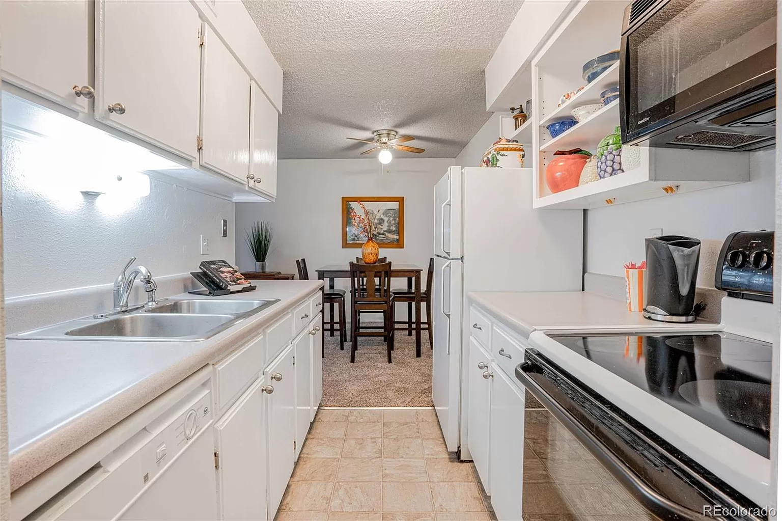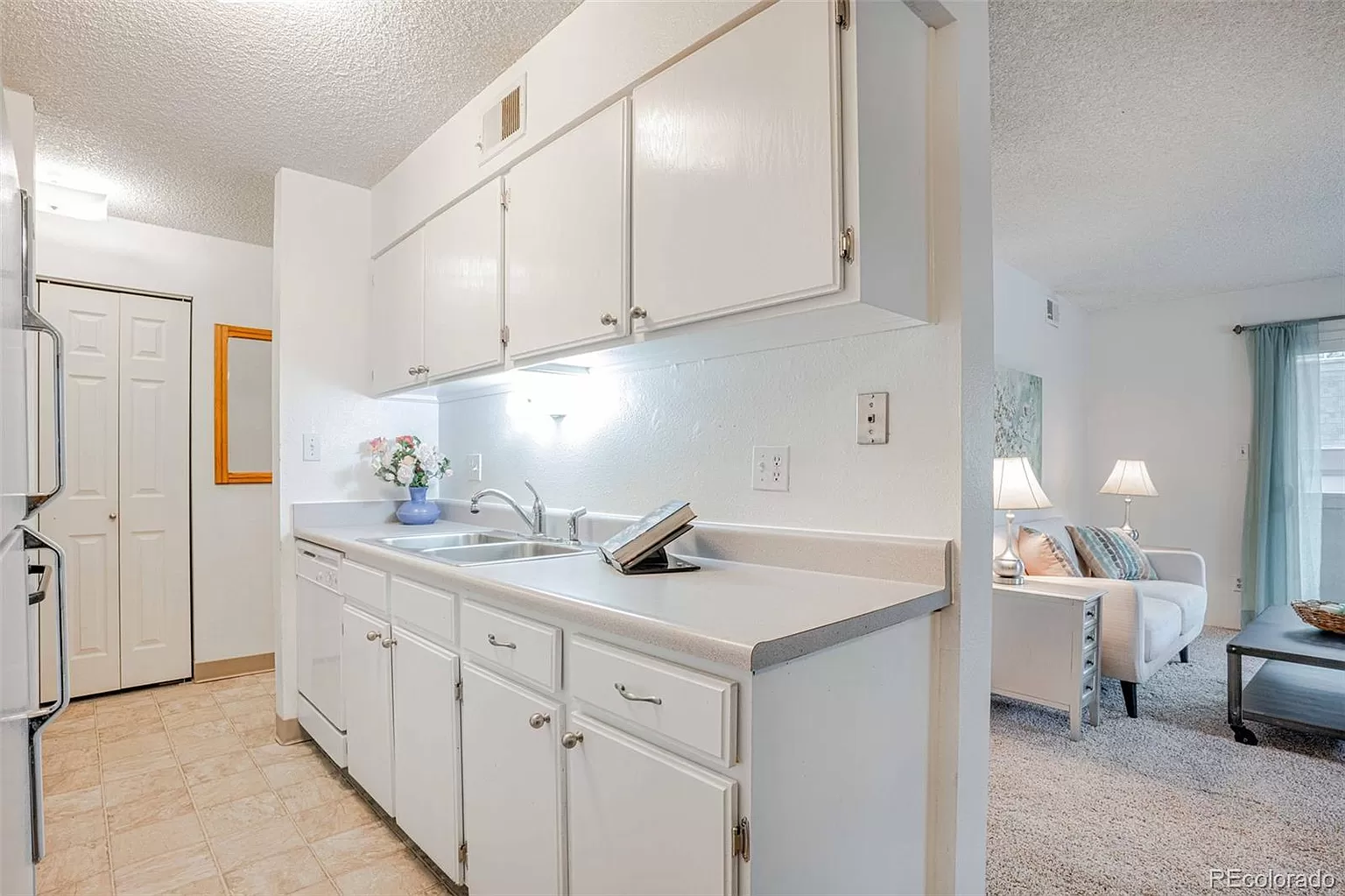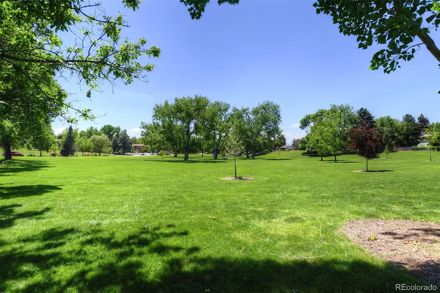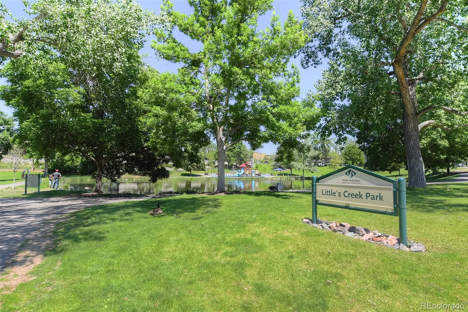 Fantastic opportunity in Highline Meadows! This two-bedroom, end-unit condo overlooks the greenspace and is just steps to the community pool, Highline Canal Trail and the vibrant Little's Creek Park. Enjoy plush new carpet and newer double pane windows throughout. The living room is spacious and bright and provides access to the covered balcony. All appliances are included in the kitchen and the adjoining dining space makes hosting gatherings a breeze. Two sizable bedrooms share use of the full hallway bathroom. Convenient in-unit laundry with stackable washer and dryer. Ample storage with two detached garages! Near dining, shopping and excellent Littleton public schools.