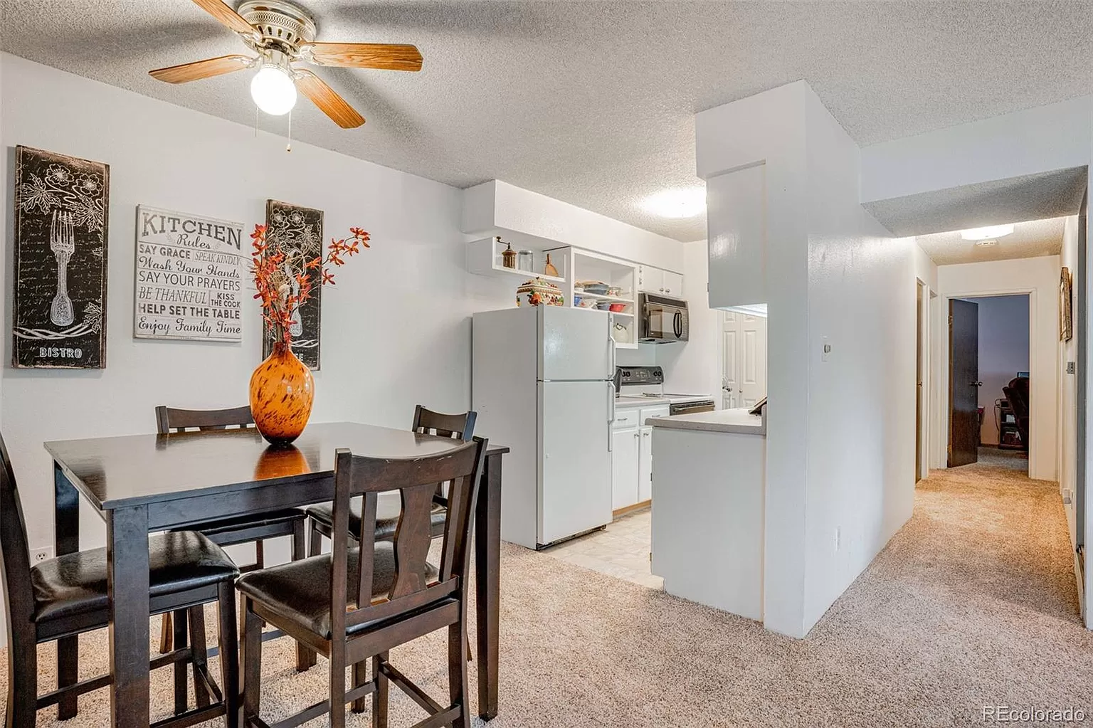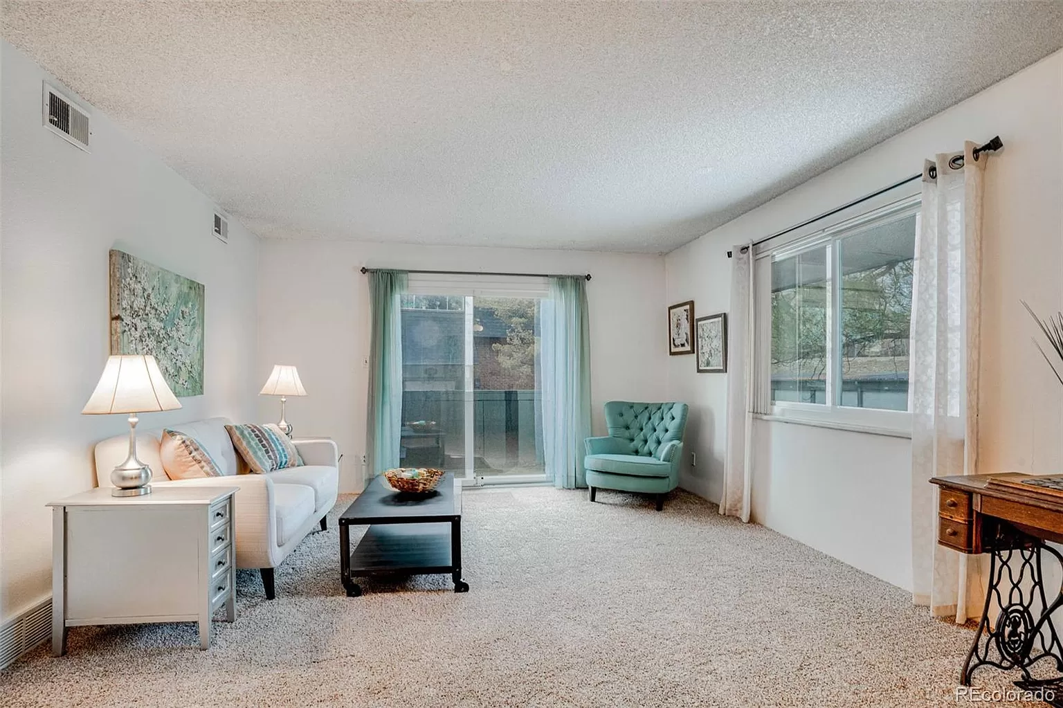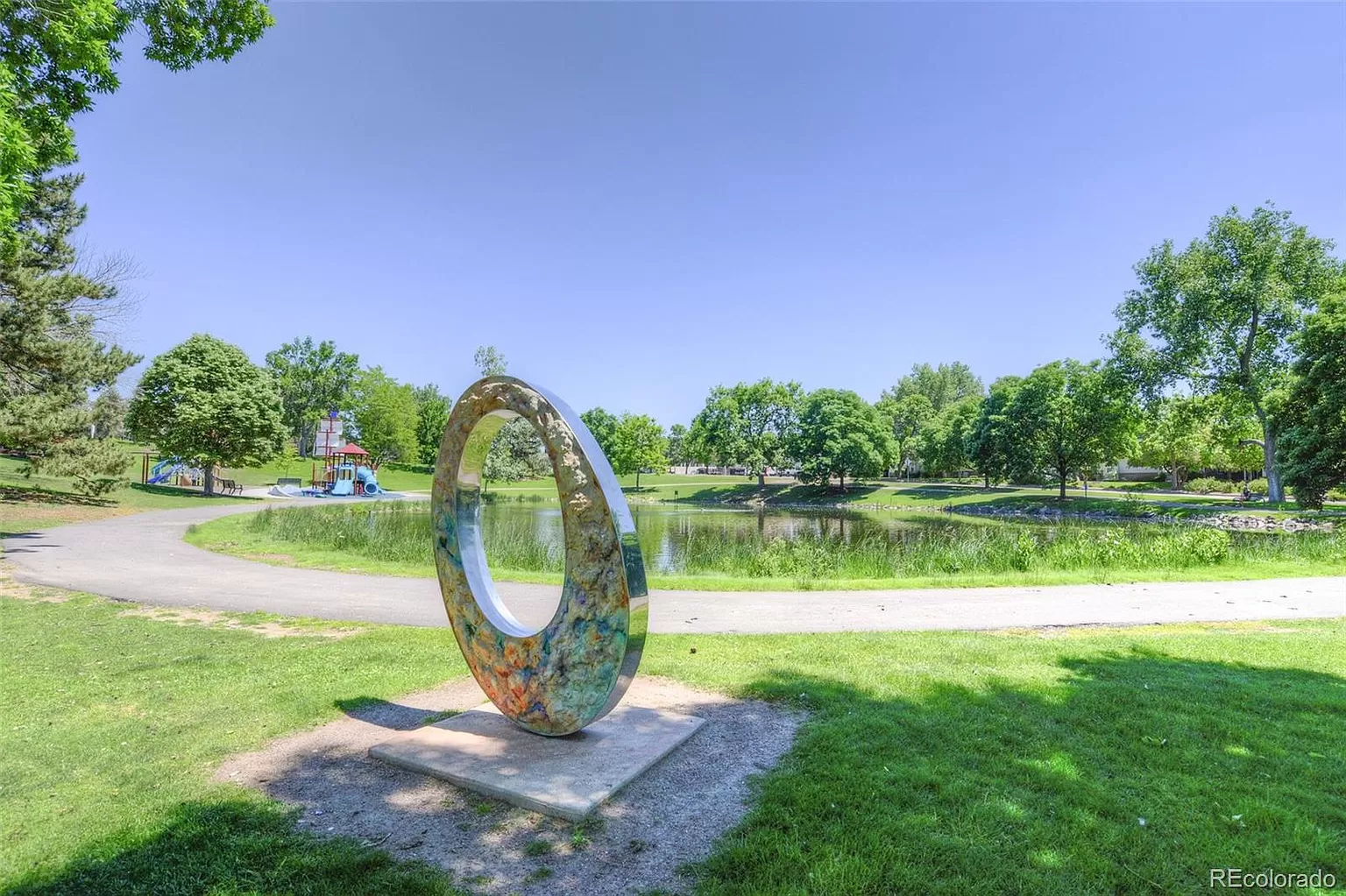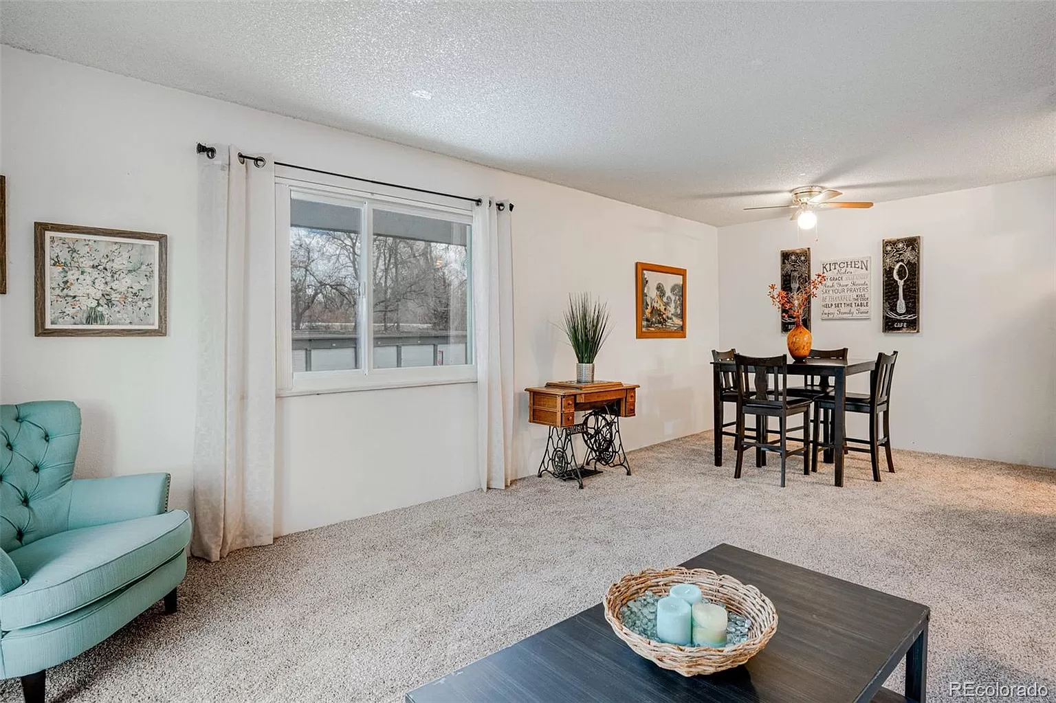 Fantastic opportunity in Highline Meadows! This two-bedroom, end-unit condo overlooks the greenspace and is just steps to the community pool, Highline Canal Trail and the vibrant Little's Creek Park. Enjoy plush new carpet and newer double pane windows throughout. The living room is spacious and bright and provides access to the covered balcony. All appliances are included in the kitchen and the adjoining dining space makes hosting gatherings a breeze. Two sizable bedrooms share use of the full hallway bathroom. Convenient in-unit laundry with stackable washer and dryer. Ample storage with two detached garages! Near dining, shopping and excellent Littleton public schools.