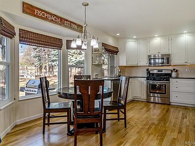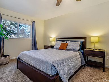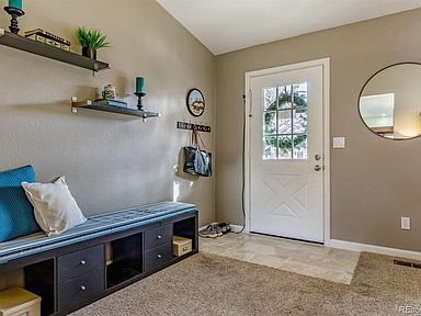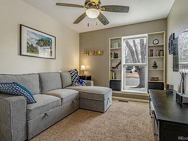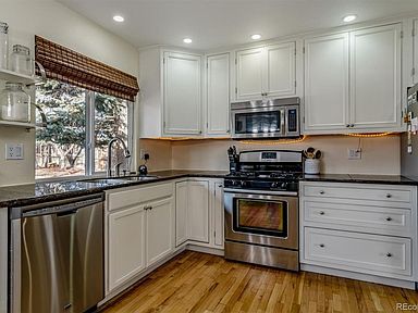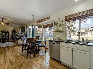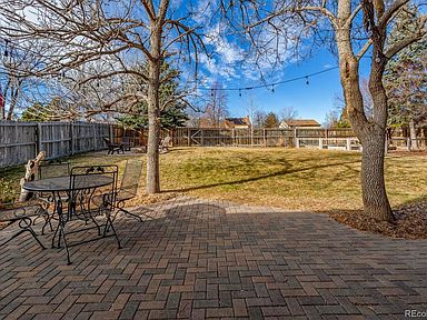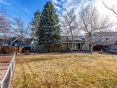 A true gem. Charming Ranch on huge lot! Updated, spacious, and flooded with natural light. Family room with real fireplace with vaulted ceilings, wood floors. Farmhouse kitchen with white cabinets, granite counters, cute shelves, pantry, bay window in cozy nook. Best Colorado Outdoor Living: huge yard with shaded patio, mature trees, fire pit, fenced garden area...room to run and play football. Front porch with room for a swing! Master with ensuite 3/4 bath, walk in closet; both baths updated. 2 car garage: insulated and drywalled with workbench, pegboards and painted floor. No popcorn ceilings! Newer: windows, furnace, water heater, firebox at fireplace. OWNED Solar Panels! Swamp cooler included. Award winning Cherry Creek Schools, near trails, park, Southlands, DIA, DTC. Don't miss this one.