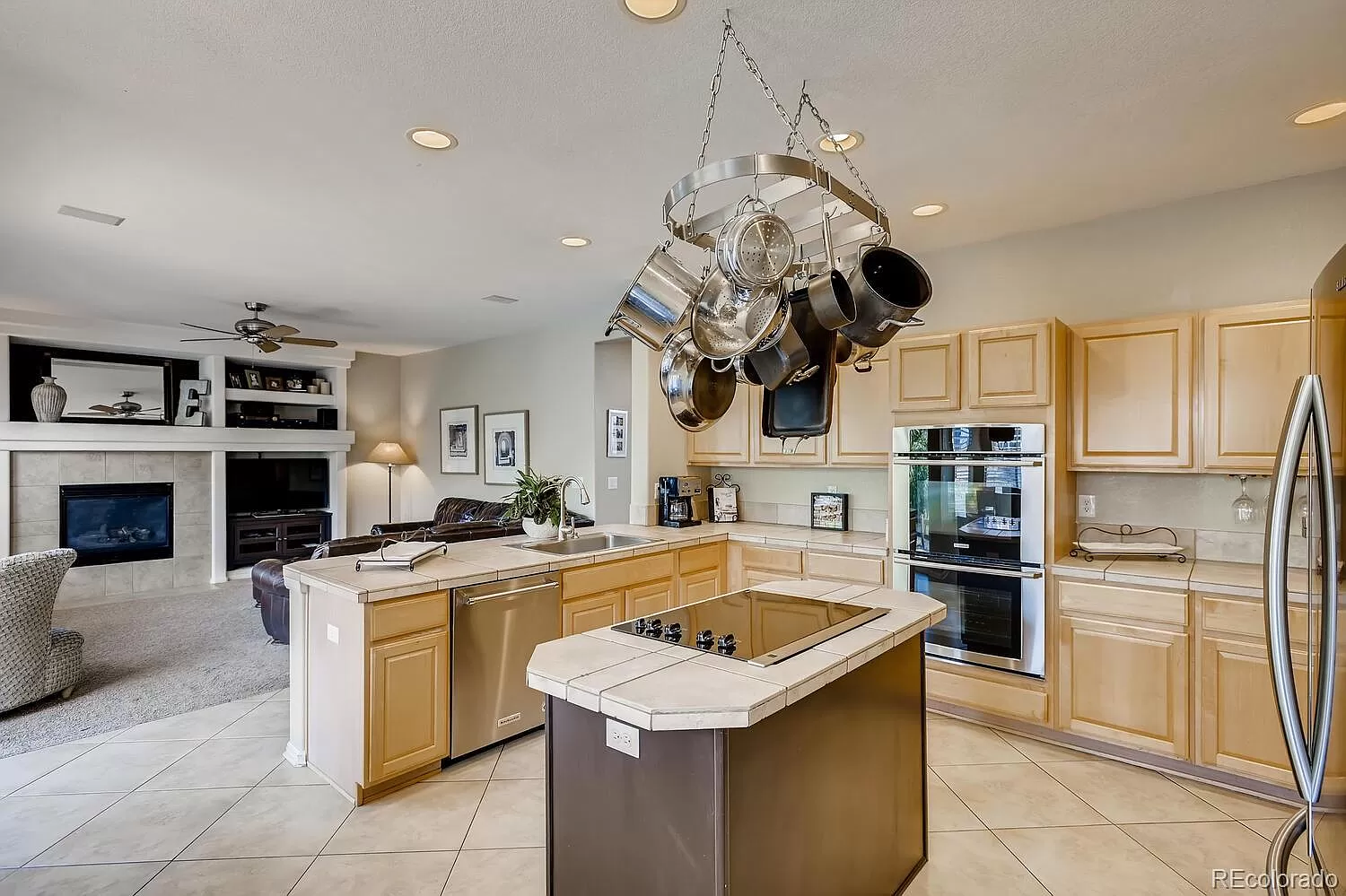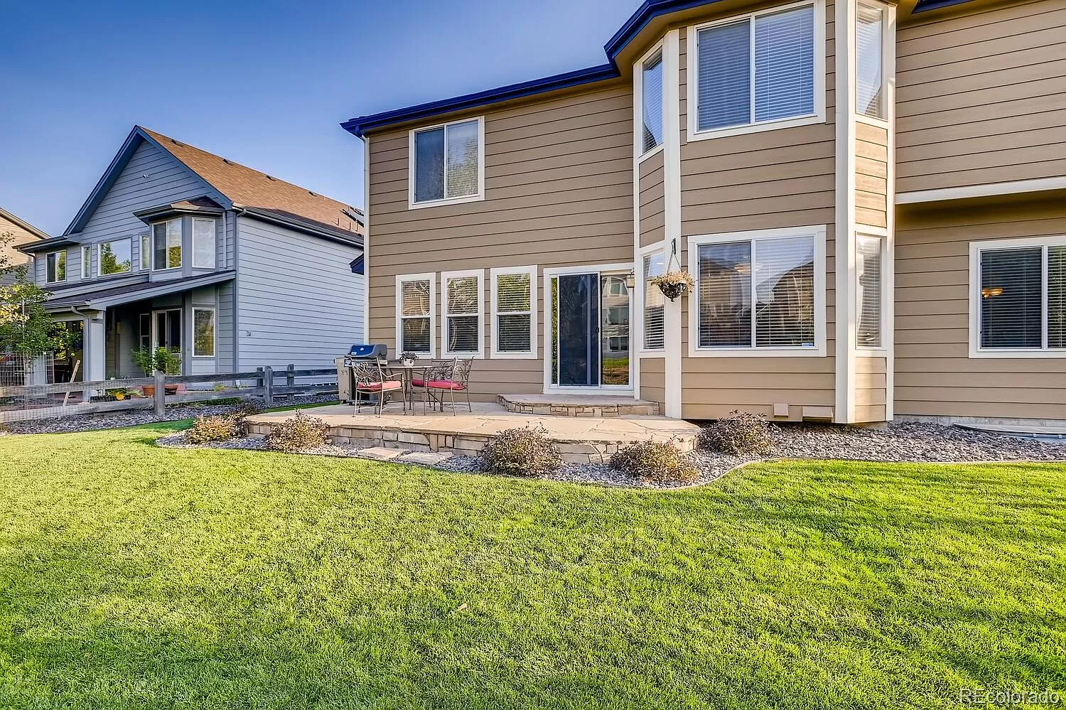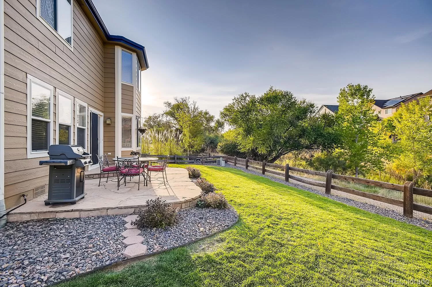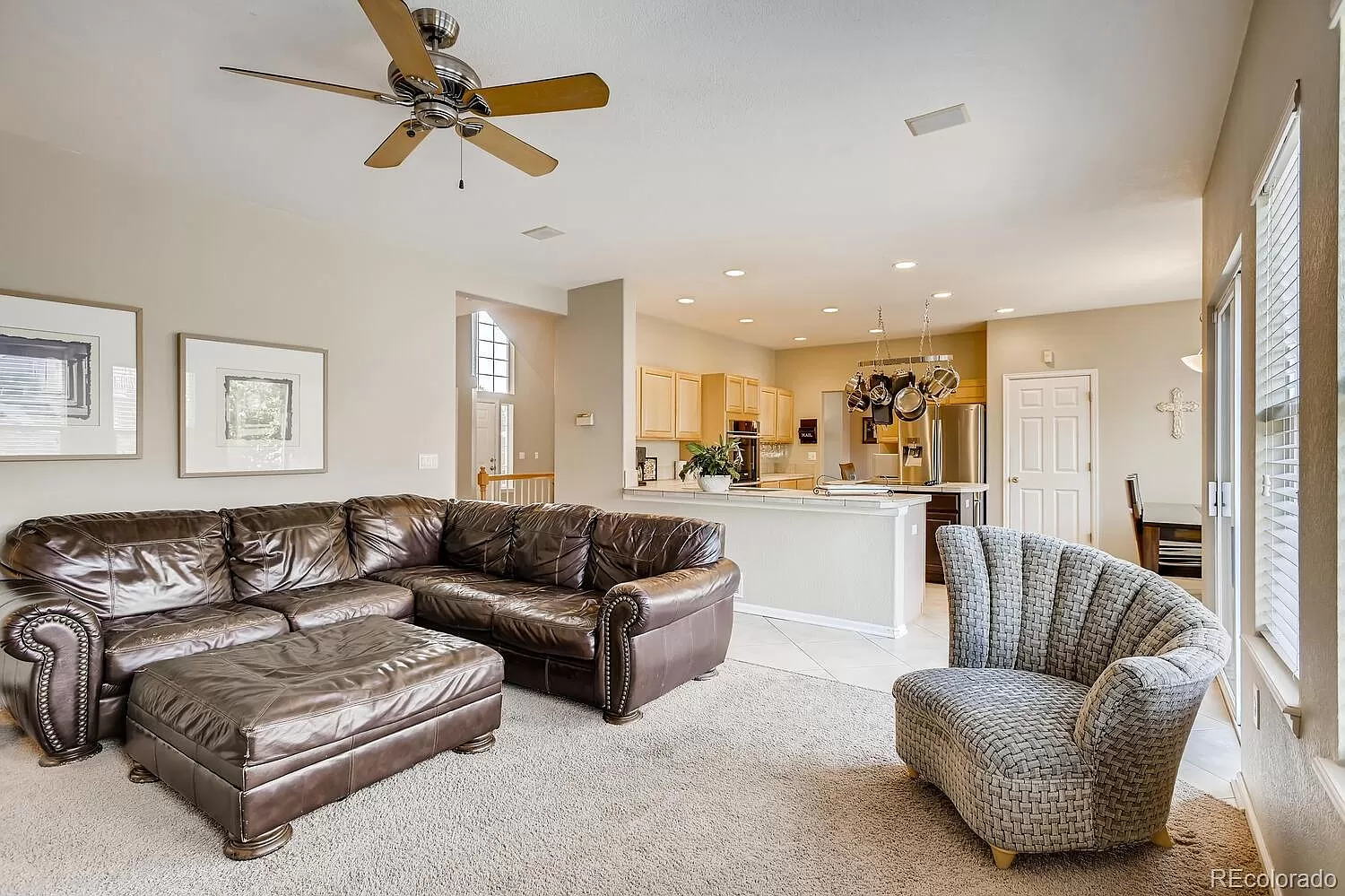 This 5 bedroom, 4 bath home located in the heart of Canterberry Crossing backs to gorgeous open space and trails! The open floor plan has soaring vaulted ceilings and plenty of natural light. The gourmet kitchen features a beautiful bay window and SS appliances. The kitchen opens to the family room with a beautiful fireplace and built-in shelves. The stunning formal dining room has crown molding and a built in buffet. The main floor office can be a 6th bedroom. Upstairs there are 4 bedrooms, including the master suite with a 5 piece bath and walk-in closet. The finished basement includes a bedroom suite with private bath, a bonus room, an exercise room and a wine cellar. Outside, enjoy the beautiful Colorado weather and wildlife from the over-sized patio. Take a short walk to the community pool or bike to downtown Parker on the trails.