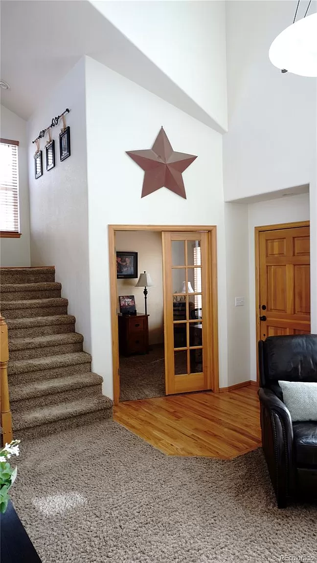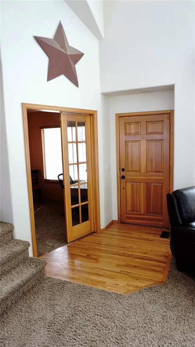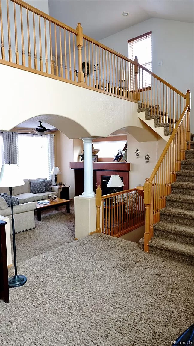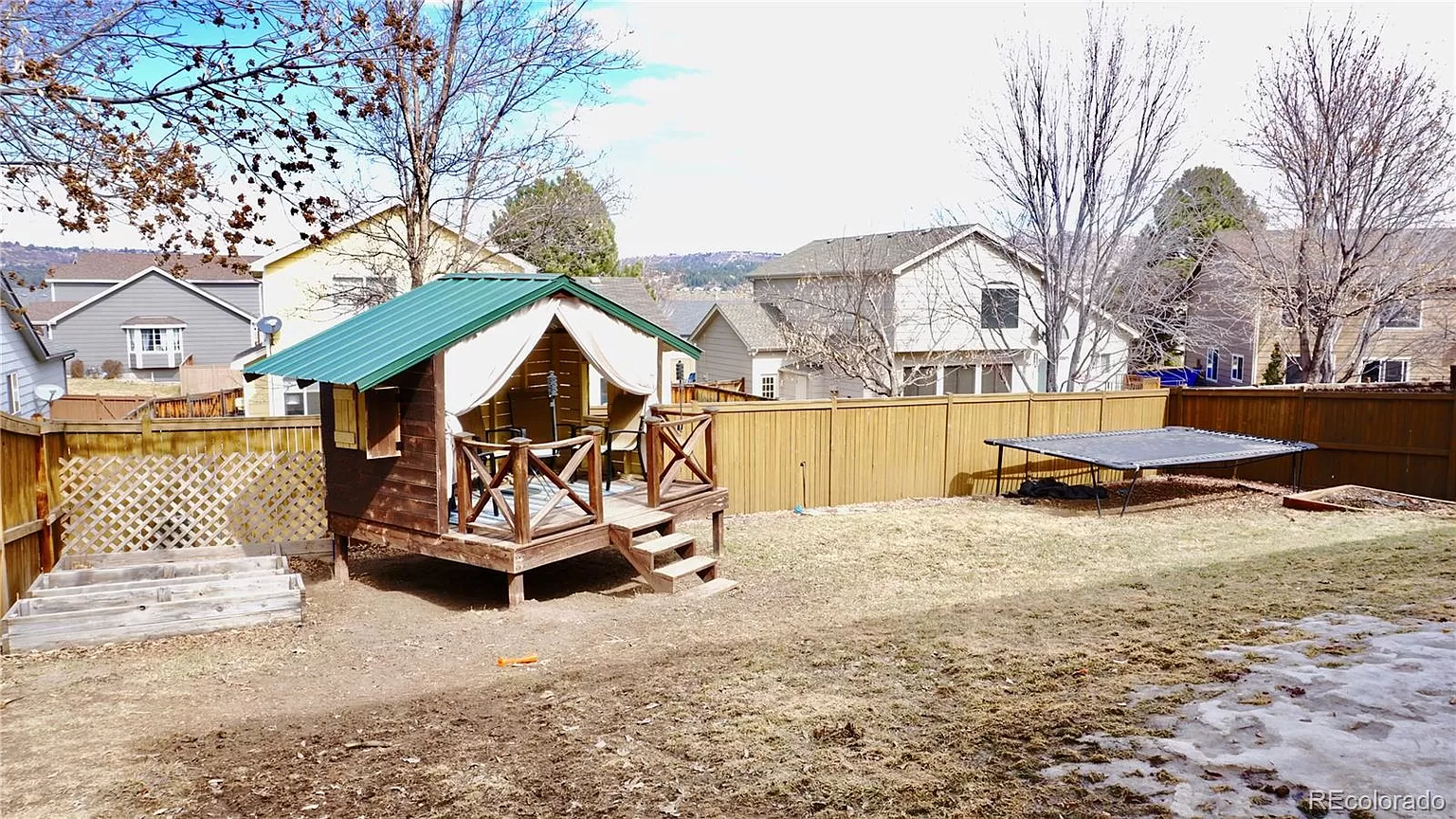 Beautiful 2 story home located in the sought-after Meadows Community. This home has it all, high vaulted ceilings, large windows for lots of natural lighting throughout. Open flow floor plan, with plenty of room for entertaining. Nice formal living room, a family room, plus a bonus getaway loft. Master suite features vaulted ceiling, walk-in closest, and a private 5-piece master bath. Two additional nice size guest bedrooms and a full guest bath. Open Kitchen with lots of cabinetry, eat-in bar and dinning room. Two home offices, one on the main level and an additional office located in the basement with beautiful custom built-in cabinetry. Basement is Partially Finished/Livable Walk-Out, with space left for your customization. Nice size yard with plenty of space for raised bed gardening, play area and includes a custom built backyard fort perfect to enjoy the summer outdoors. Conveniently located by shopping, hospital, schools, recreation/parks, and minutes to I-25.