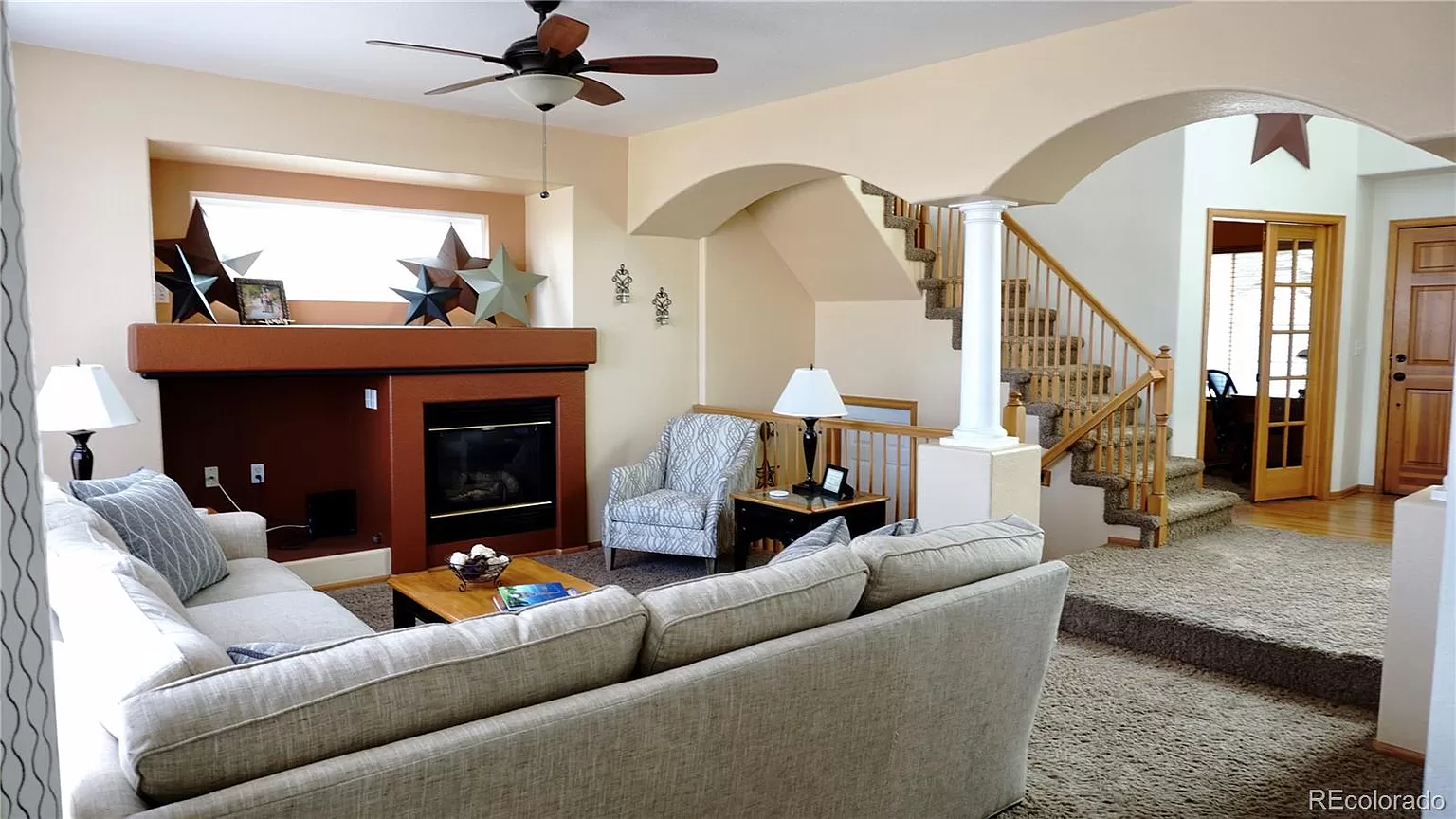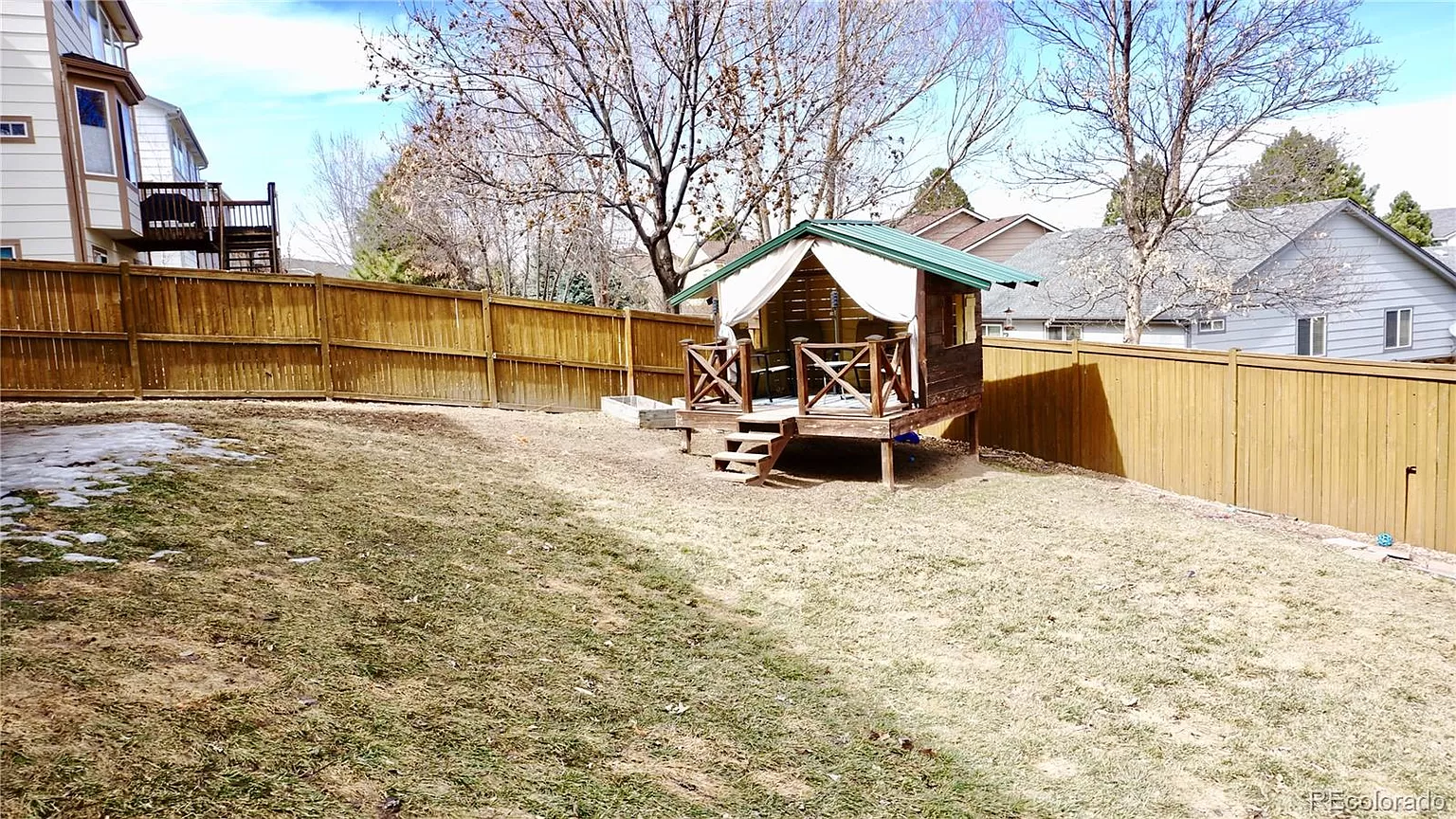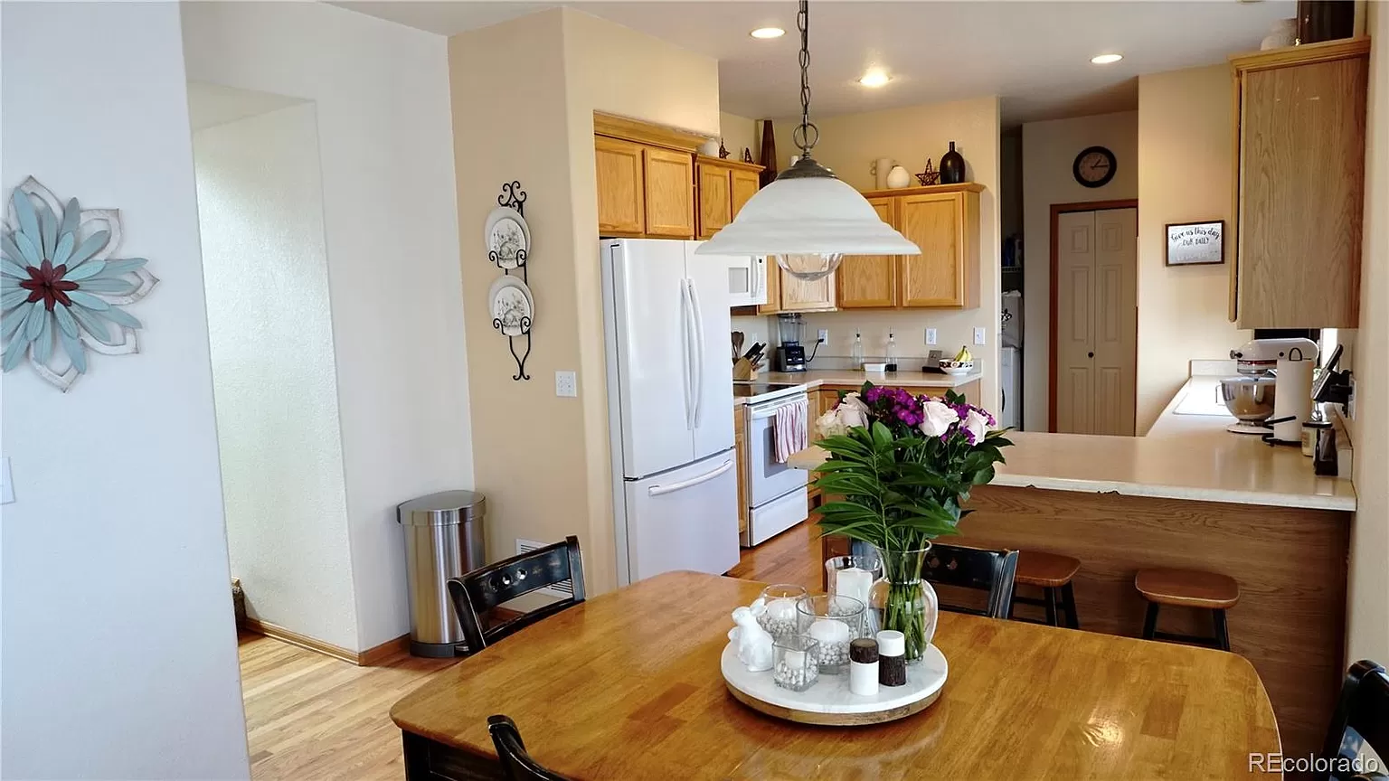 Beautiful 2 story home located in the sought-after Meadows Community. This home has it all, high vaulted ceilings, large windows for lots of natural lighting throughout. Open flow floor plan, with plenty of room for entertaining. Nice formal living room, a family room, plus a bonus getaway loft. Master suite features vaulted ceiling, walk-in closest, and a private 5-piece master bath. Two additional nice size guest bedrooms and a full guest bath. Open Kitchen with lots of cabinetry, eat-in bar and dinning room. Two home offices, one on the main level and an additional office located in the basement with beautiful custom built-in cabinetry. Basement is Partially Finished/Livable Walk-Out, with space left for your customization. Nice size yard with plenty of space for raised bed gardening, play area and includes a custom built backyard fort perfect to enjoy the summer outdoors. Conveniently located by shopping, hospital, schools, recreation/parks, and minutes to I-25.