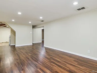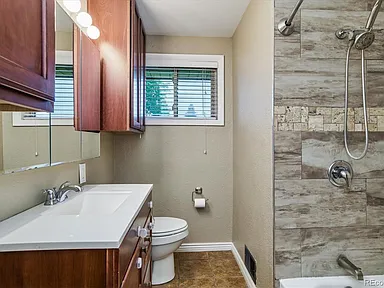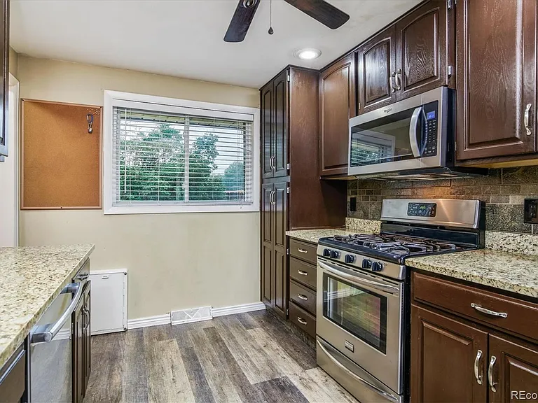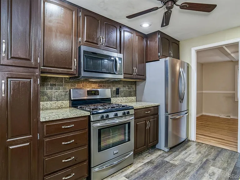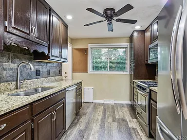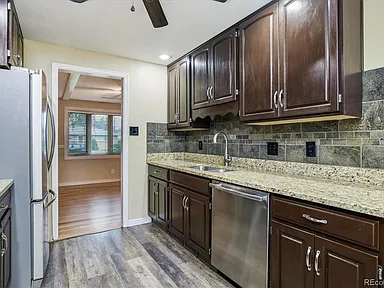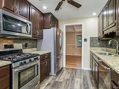 Classic brick updated ranch with a fully finished basement! Main floor offers a lovely kitchen with granite countertops and stainless appliances, two bedrooms, one full bathroom. The finished basement has a non-conforming bedroom, bonus room, ¾ bath, large flex space perfect for movies, workout room, etc. Lovely corner lot - private backyard, sprinkler system. Newly refinished hardwood floors, central A/C. Great location close to Hwy-285 and Santa Fe - quick access to downtown or the foothills. Hurry, this one is a gem!