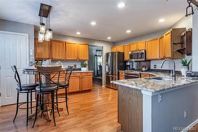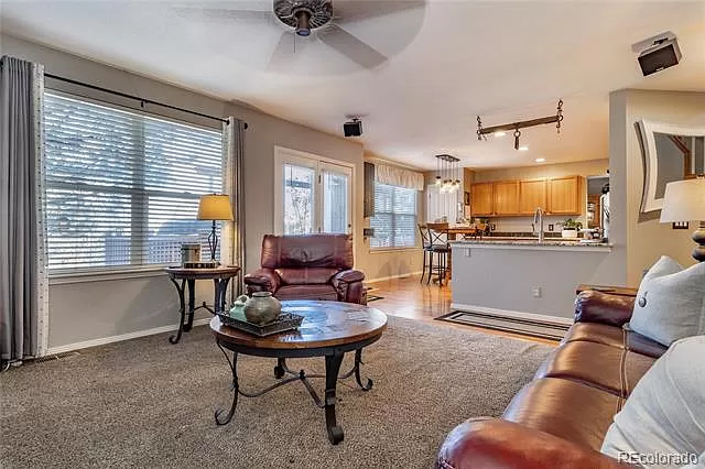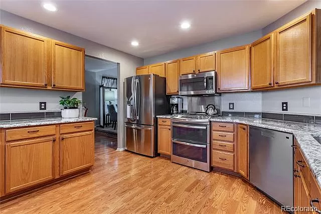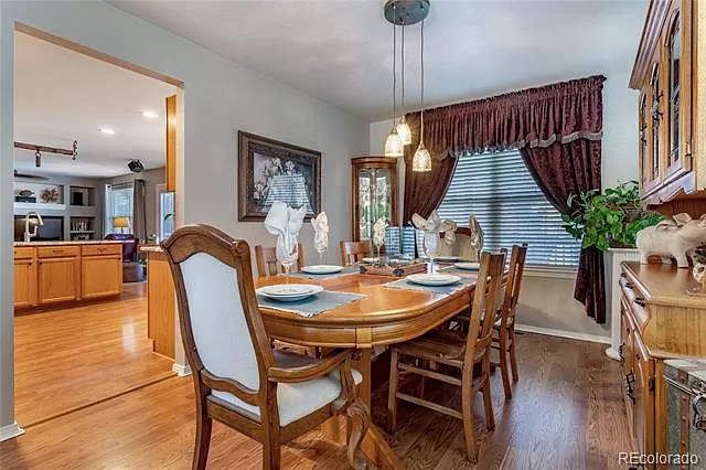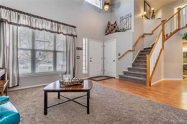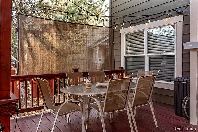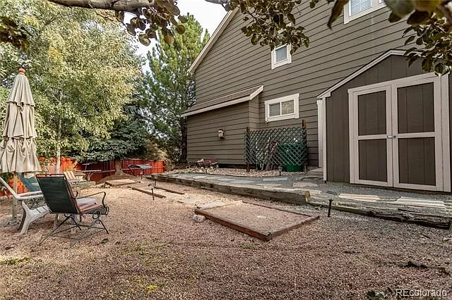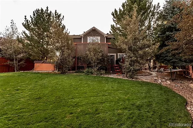 Pride of ownership! Colorado outdoor living at its best: cozy front porch; large, private deck (overbuilt to accommodate hot tub) with sailshades and patio lights included; prime lot: on quiet culdesac with huge yard; southeast driveway for quick snow melting! Kitchen with newer appliances (two ovens, gas cooktop, Asko dishwasher) and gorgeous granite countertops; open to family room and backyard/deck. Four bedrooms upstairs, generous master suite. Main floor laundry room (w/d included). Unfinished basement to customize for your needs. North side of the Meadows...quick access to I-25 for easy commute; restaurants, shopping, entertainment close by! Buyer can join the Grange, small additional charge. 1 year home warranty!