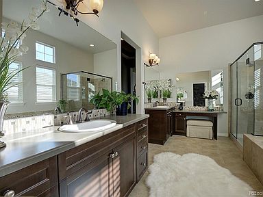 Dreamy turn key ranch, top of the line Meadows home on deep fully landscaped private lot. Main level living at its finest. Walk into generous large welcoming foyer gently welcomes you, easy flow to formal dining room area has regal beaded board & inlay ceilings, wide plank easy to care laminate wood floors throughout. Large open concept great room , huge floor to ceiling windows with natural light & views of the mountains, blonde stone fireplace with easy walk through to exterior living with homogenous wood burning stone fireplace hearth for all seasons on extended patios. Eat in Kitchen is easy flow from great room area with generous island, stainless steel appliances, hunky walnut cabinetry and steps out to the magnificent landscaped oasis ideal for relaxing. Convenient fist floor private master suite equipped with his/her areas, wonderful walnut cabinetry, regal tile seamless shower, soaking tub & boast extra large his/her closets . 2nd bedroom is located on 1st floor and offers privacy with its own attached remodeled bathroom ideal for guests. Main floor office is private with natural light, a great space for home office and or 3rd bedroom on main level. Lower level has large space for game room, cinema room & or more room to office at home. 3rd bedroom could be considered a 2nd master in size and has a detached private fully appointed bathroom ideal for over flow & privacy. Convenient first floor laundry has been remodeled with a farm sink, new fresh cabinetry and wood butcher counters. The lower level boats an additional 1123 unfinished clean as a whistle extra square footage for ample storage, could be readily converted to more finished living space if needed. Gently lived in home with 1 lovely owner. Steps away to Ridgeline open space trails for hiking & biking. Copy & Paste tour: https://youtu.be/vE3FDK5BPyA