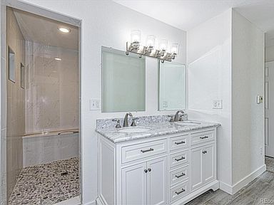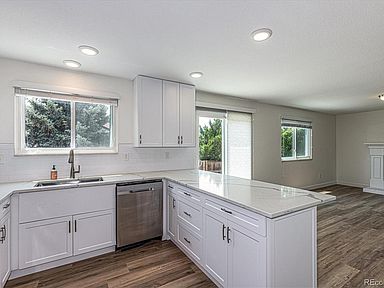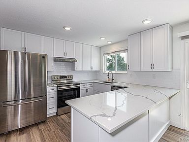 Just in time for Back To School: this gem of a house feeds to Grandview High School/Cherry Creek Schools. Completely remodeled, end of culdesac, with a back yard gate to the neighborhood park! Brand new Farmhouse Kitchen with white cabinets, stainless appliances, quartz counters, subway tile! Butler's Pantry with glass cabinets = great coffee bar and extra storage! Kitchen open to family room (or large dining) with custom millwork gas fireplace. Spacious master with walk in closet, spa bathroom with dual shower heads, shower seat, double vanities. House is flooded with natural light; no popcorn ceilings, wrought iron rails, updated everything! 2021: New furnace, siding, trim; windows 2019. Unfinished basement to customize as you please. All appliances stay. Pool community. Did I say this one has it all?