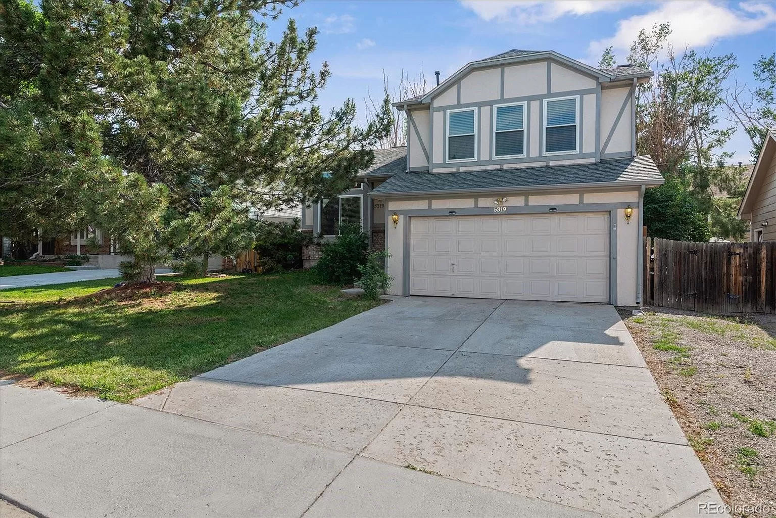 Welcome to 5319 E Courtney Ave. This lovely and affordable single family home is located in the desirable Founders neighborhood. This adorable home has a great and functional floorplan! The house sits on a quiet street with very friendly neighbors who often host bonfires and come together as a community. As you approach the front door, take in the cute porch. Upon entering, you will be greeted by a light and bright living room with lots of windows and a vaulted ceiling. This flows nicely into the dining area and the kitchen with new granite countertops, some stainless steel appliances and laminate wood-style flooring throughout. The lower level is a good size family room with a gas fireplace, perfect for movie nights with the family or entertaining friends. The flow continues through the sliding glass door into the private backyard for the best of Colorado’s indoor/outdoor living. Now headed upstairs, you will find a hall bathroom, two secondary bedrooms and a large master bedroom with an attached master bathroom. Additional amenities in the home include extra storage in the garage, a radon system, and a furnace and AC that were replaced only 4 years ago. Single family homes in the Denver metro area are tough to find in this price point. Come check it out before this little gem is gone!