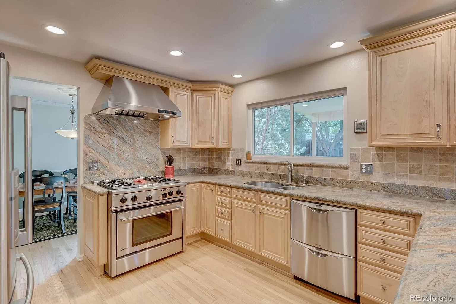 Beautifully updated home in the highly coveted Foxridge neighborhood. All four bedrooms are on the 2nd floor, including a master suite with walk-in closet. Hardwood floors run throughout the main floor. Gorgeous kitchen updated with granite counter tops, stainless steel appliances, high-end gas range/oven and 2-drawer Fisher & Paykel dishwasher. Kitchen opens to family room and flows out to a covered patio. Lovely updates in all 3 bathrooms; master bath and full bath with double sinks and granite counter tops. Updated double pane windows. Updated laundry room with utility sink. Unfinished basement has ample room for storage or is a clean-slate for your re-model plans. Home is ideally located (walking distance) to Willow Spring Open Space, trails, parks, shopping and dining. Own this amazing Centennial home in the award-winning Littleton school district.