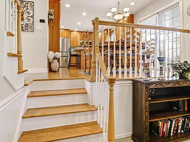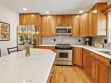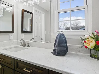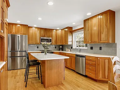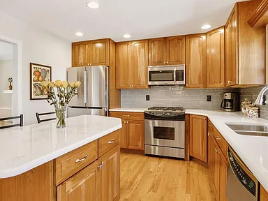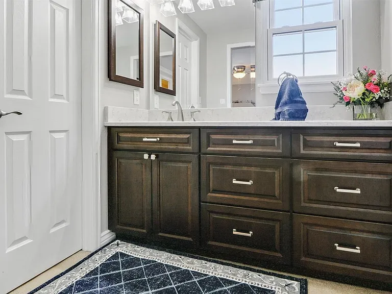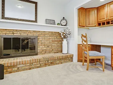 This one is PERFECT in super desirable Homestead Farm! Spotless and meticulously maintained and all the expensive stuff done: newer roof and Champion windows; furnace + AC 2019; sewer line 2022. Faces due South for primo snowmelt! Kitchen with quartz counters, stainless appliances, 42” uppers, pull out trash can; center island and built in custom pantry cupboard, refrigerator stays. Living room flooded with natural light from large, south facing window (space would be great formal dining room or study) has a pocket door to the kitchen. Family room with gas fireplace, built in desk area, plantation shutters.