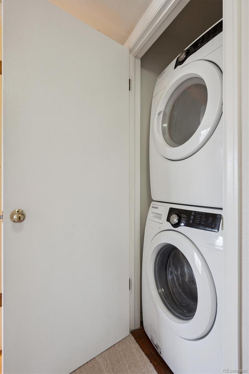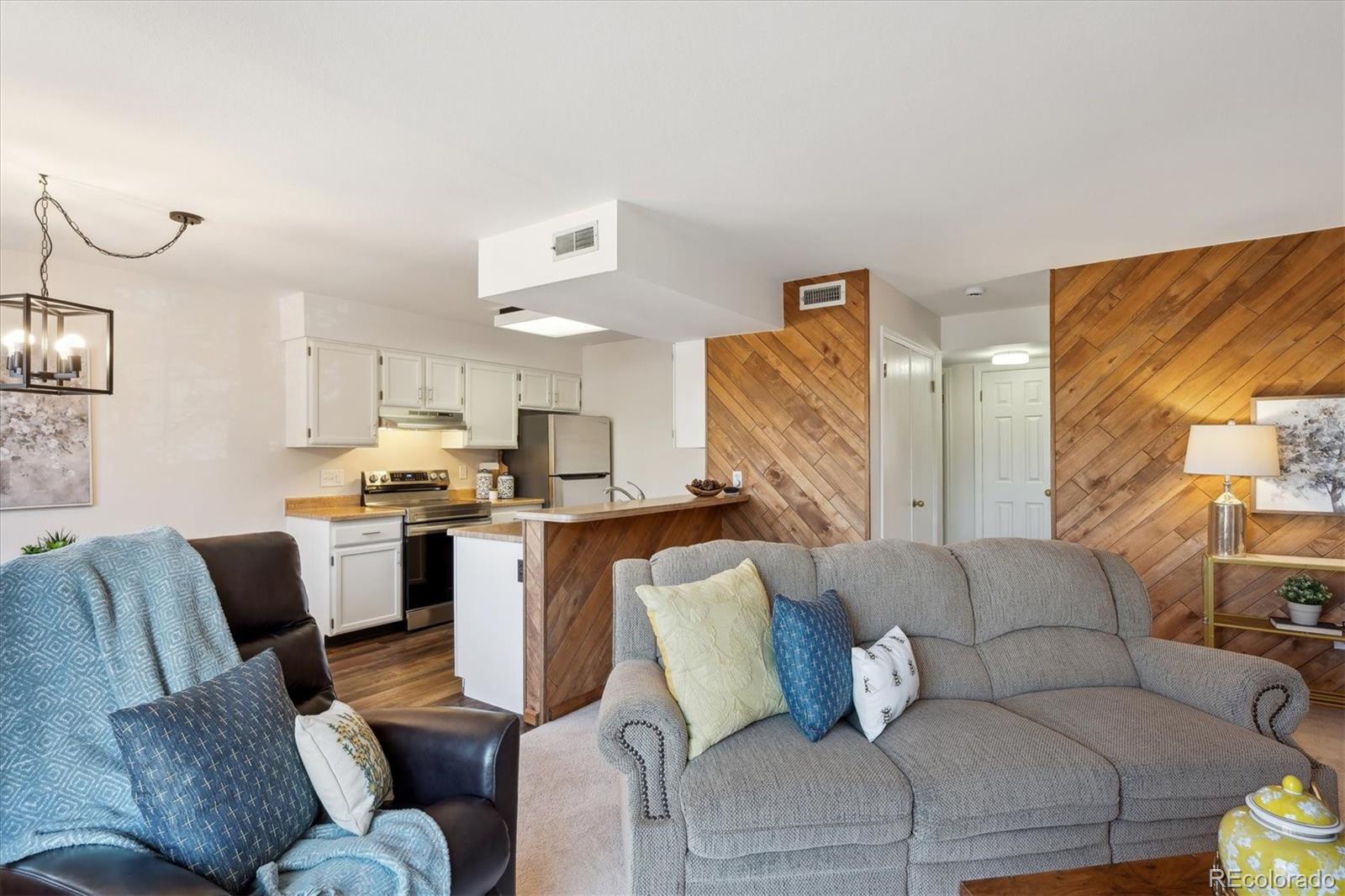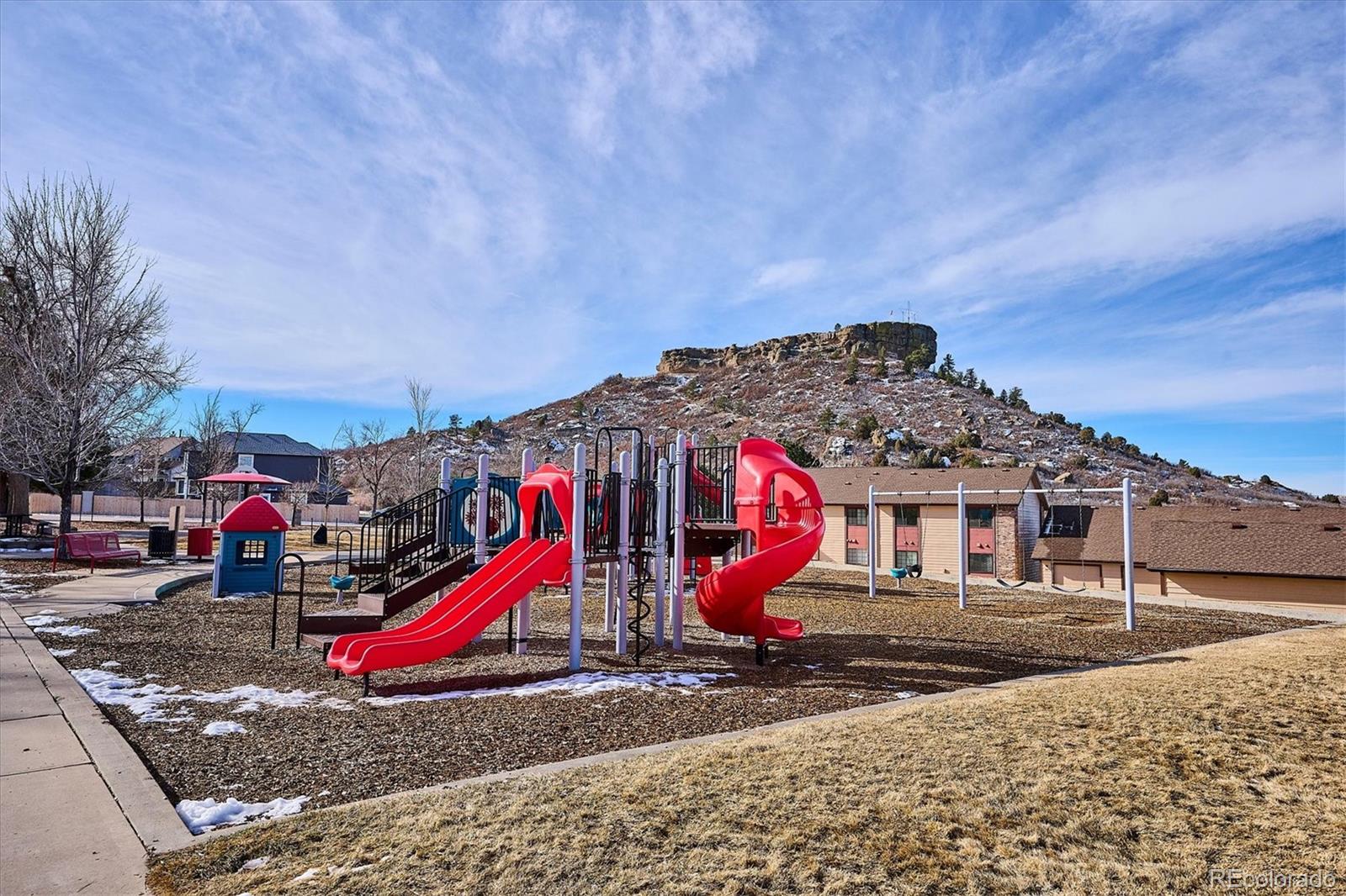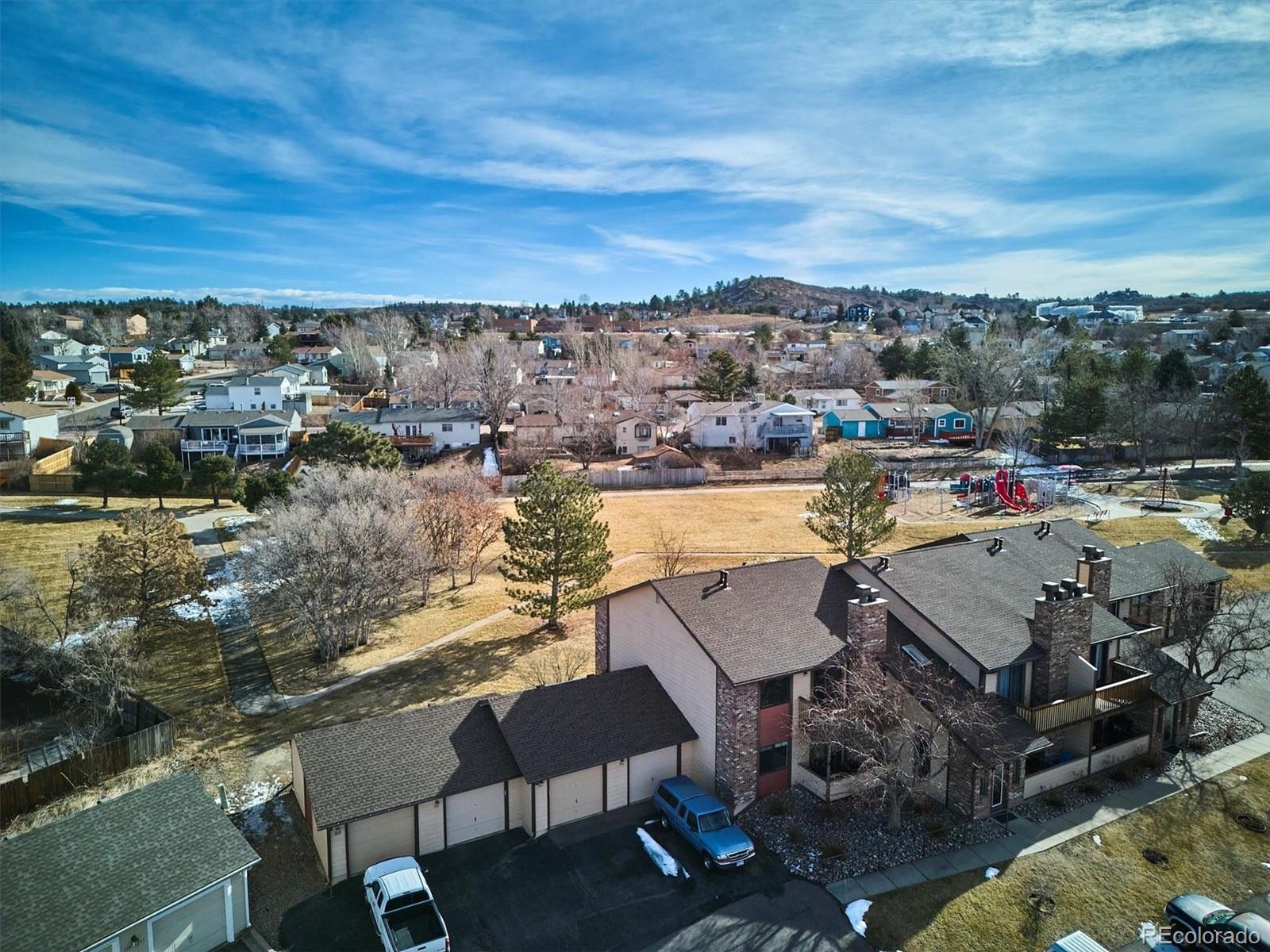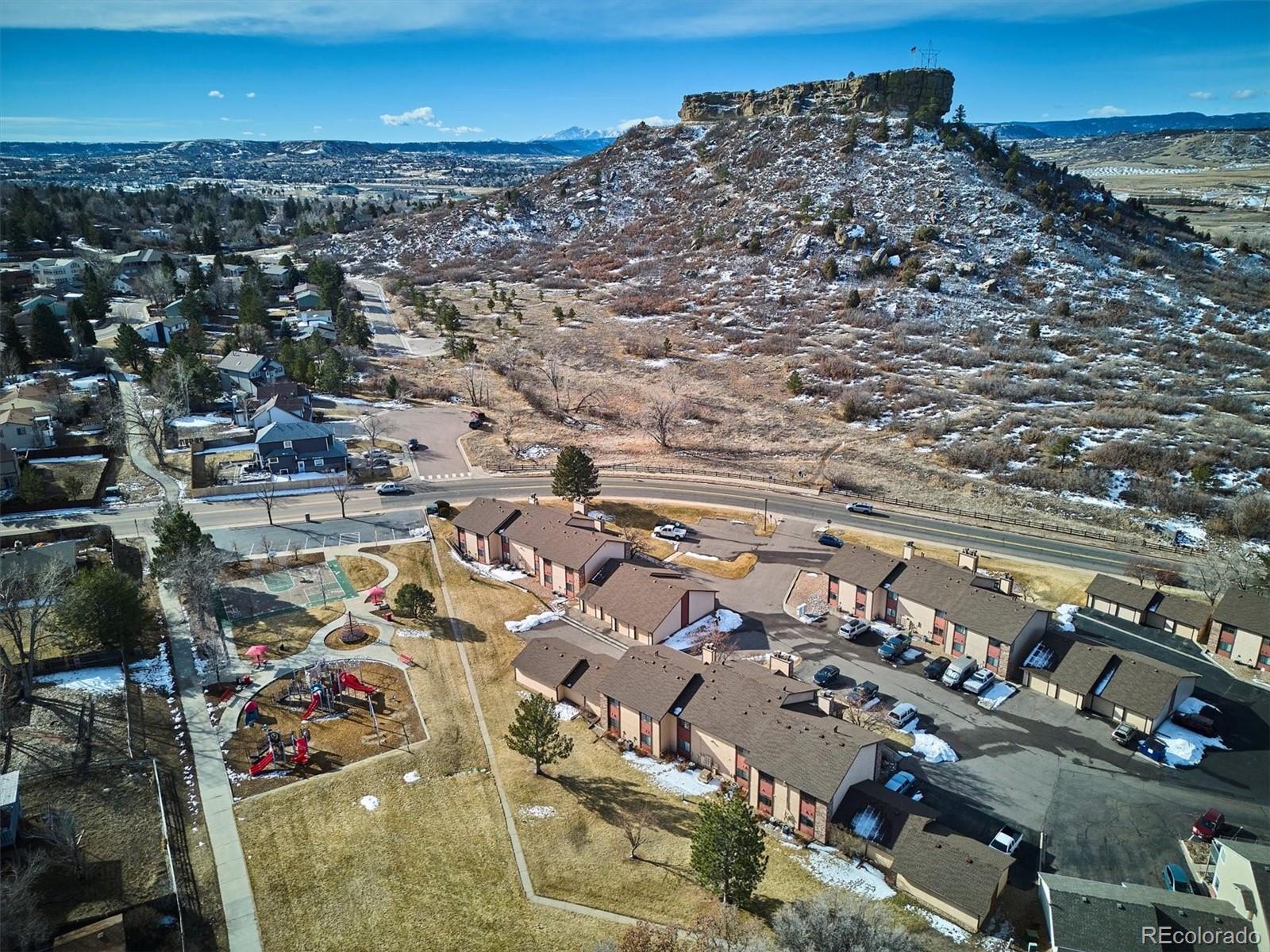 **Seller to pay 1 year HOA dues at closing!!** Located in the heart of Castle Rock, this home offers a prime location and stunning views! This top-floor corner unit features an open-concept layout that lives large, flooded with natural light from its southern exposure. With two primary suites and separate baths, it's an ideal floorplan. The home is updated with brand new appliances, fresh paint; newer Champion windows, carpet, laminate flooring, and a cozy wood-burning fireplace. Step outside to the Trex deck with breathtaking views of ‘The Rock’ and the mountains. Full-size washer and dryer are included, and the detached 1-car garage offers ample storage space. Recent upgrades include a new electric panel and water heater (2022). Enjoy a prime location just a 10-minute stroll from downtown, with shops, restaurants, and entertainment. This home backs up to Castle North Park and is across the street from Rock Park, offering direct access to the park and nature right out your door. A home warranty provides added peace of mind.