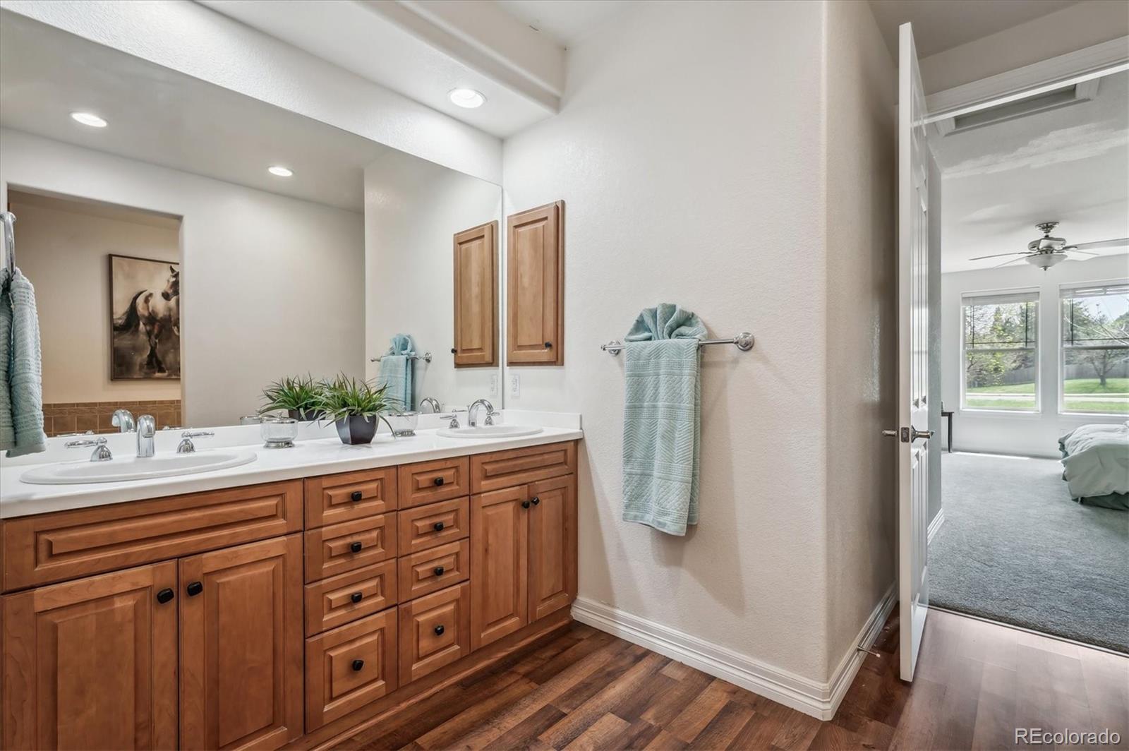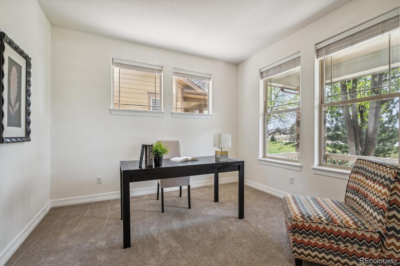 SELLERS OFFERING 5K INCENTIVE TOWARDS RATE BUYDOWN OR HOA PREPAYMENT...Maintenance-free paired home in the coveted Ridge at Stony Brook. Ranch-style with all living on one level (only two stairs from the garage to living area). Spacious study with French doors and southern exposure, offering abundant natural light filtered by mature trees, with greenbelt views. The luxurious primary suite features a tray ceiling, large walk-in closet, and a five-piece bath. Second bedroom located next to hall bath. Well-appointed kitchen with upgraded cabinetry, ample counter space, and a large pantry. Open to the living and dining areas, creating an ideal layout for entertaining. The living room includes a gas fireplace and large windows, bringing in natural light and creating a bright, open atmosphere. Private front porch tucked among mature trees and a back patio off the living room, perfect for enjoying Colorado’s outdoor lifestyle. Two-car attached garage and separate laundry room complete the home. This 55+ community allows buyers under 55 (80% of residents must be 55+), but no one under 19 allowed to reside here. Conveniently located near 470 in Littleton, close to shopping, restaurants, medical care, trails, and quick access to the mountains. A one-year home warranty is included, plus a $5k incentive for HOA prepayment or interest rate buy-down