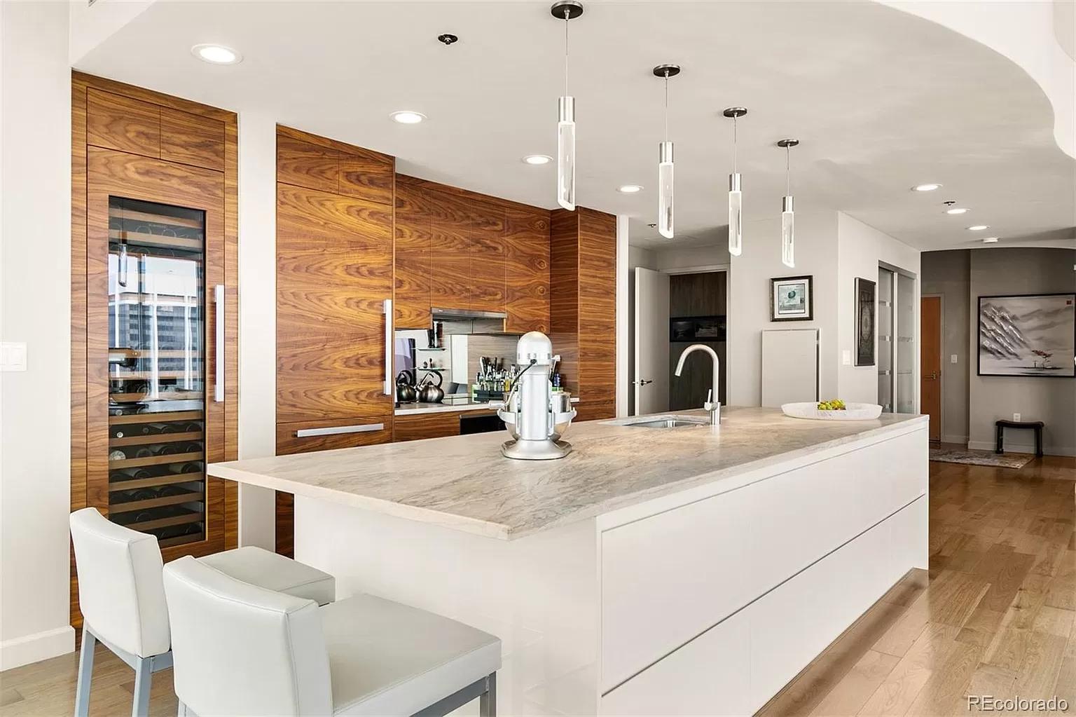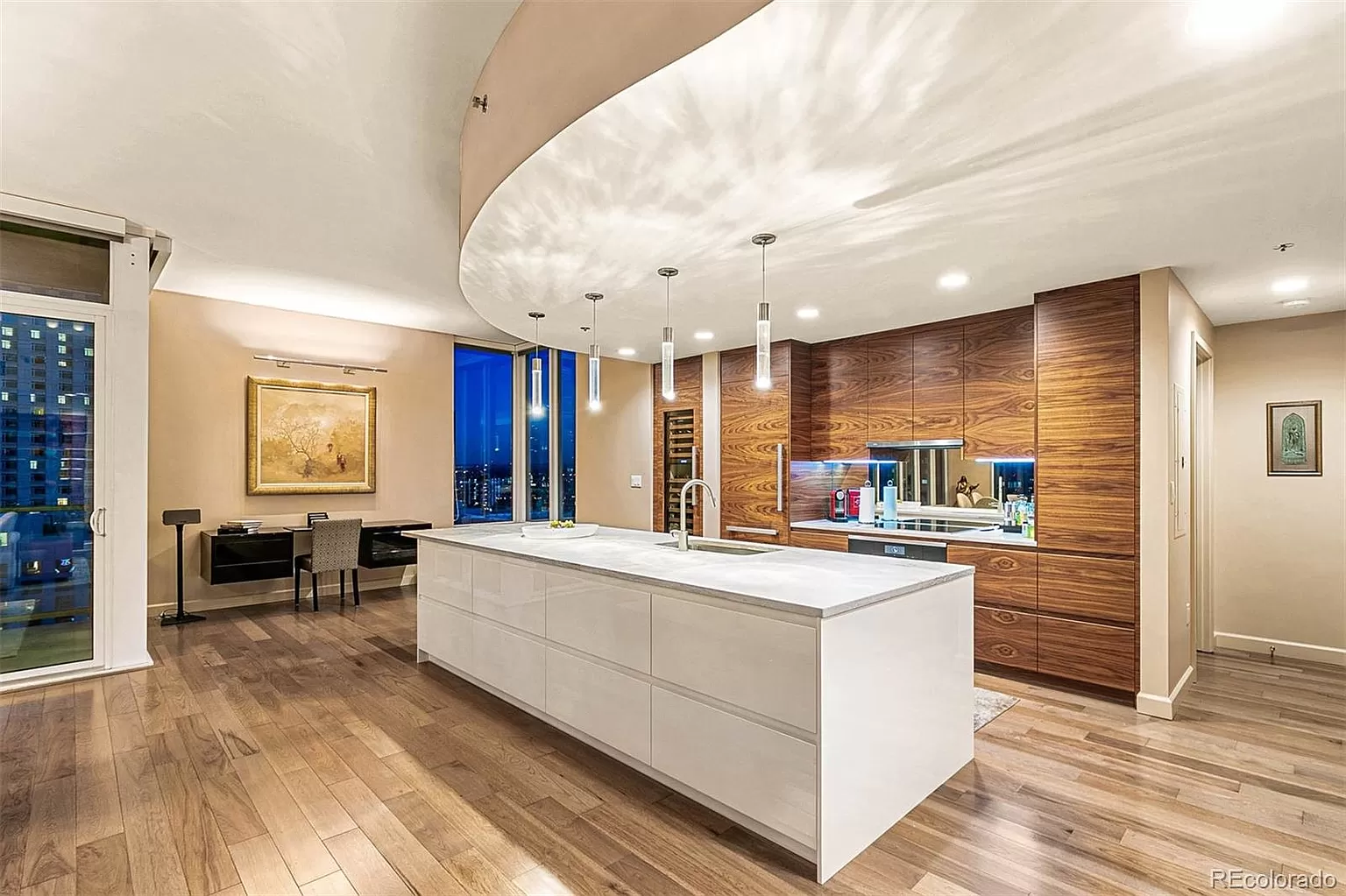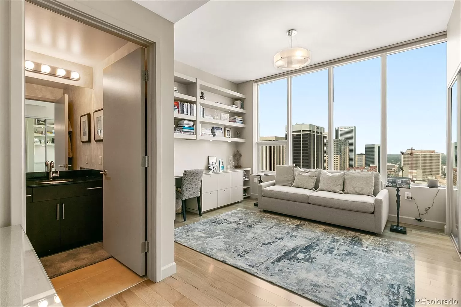 Experience Luxurious Living at the Spire and leave all your troubles behind! This end unit has been professionally designed and remodeled to perfection while sparing no expense. Home features high ceilings with floor to ceiling windows offering spectacular views of the city. In addition to great entertainment space, the condo offers two work spaces allowing for relaxing views while hard at work. The gourmet kitchen imported from Europe boasts top of line appliances (Miele and Subzero), custom 12 foot island complete with abundant storage. The spacious living area features built in entertainment center. This LEED certified building offers city and mountain views with over 35,000 square feet of amenity space complete with dog park, gym, theater, pool, spa, outdoor courtyard with fire pit and attended lobby. Recent information received from the city indicates a $150 million revamping of the 16th Street Mall. Don't miss this amazing lock and leave opportunity!