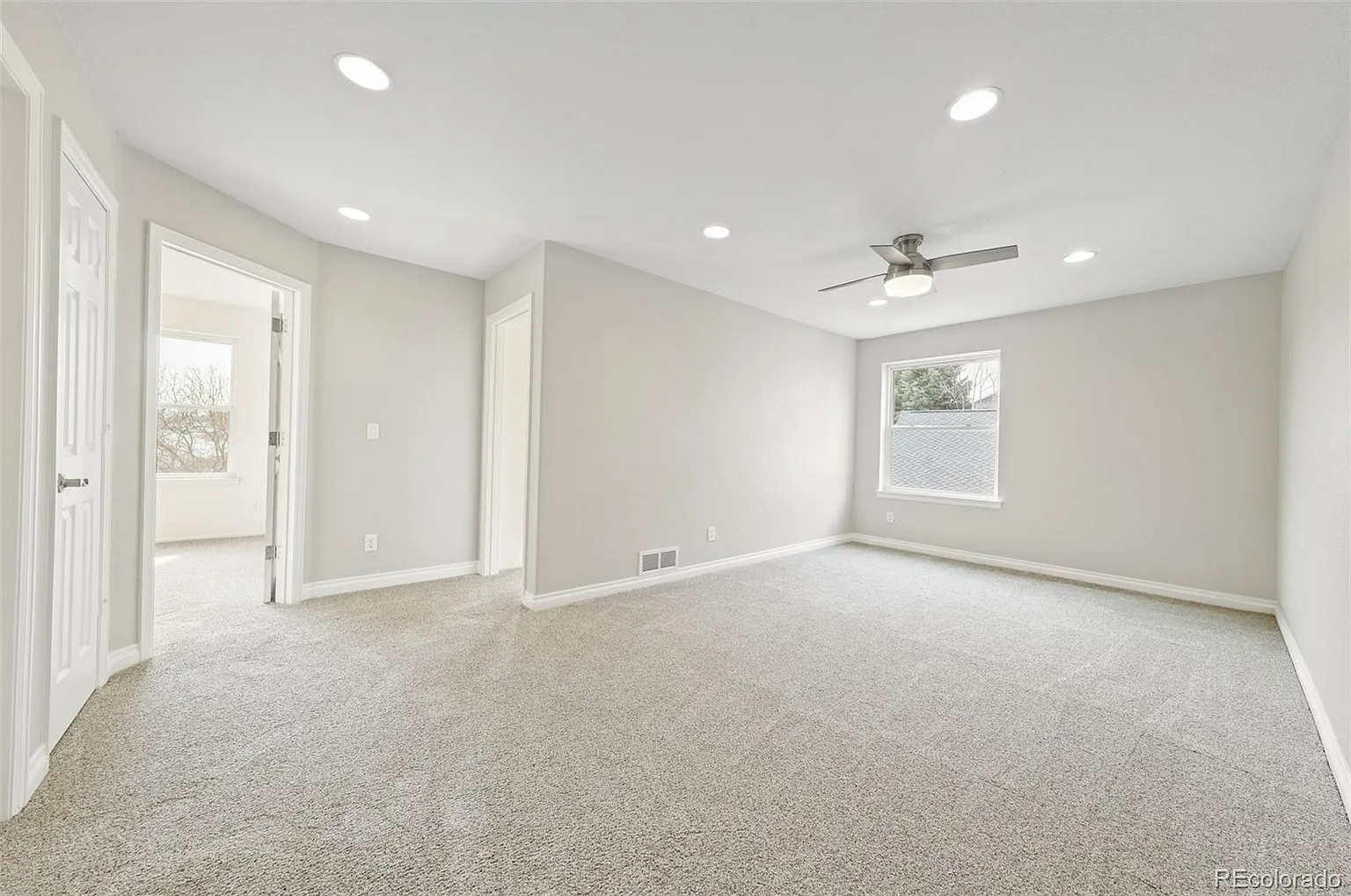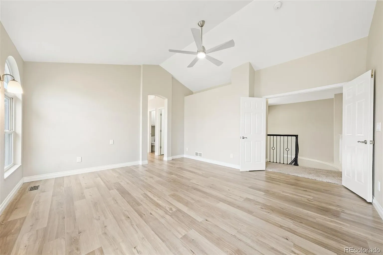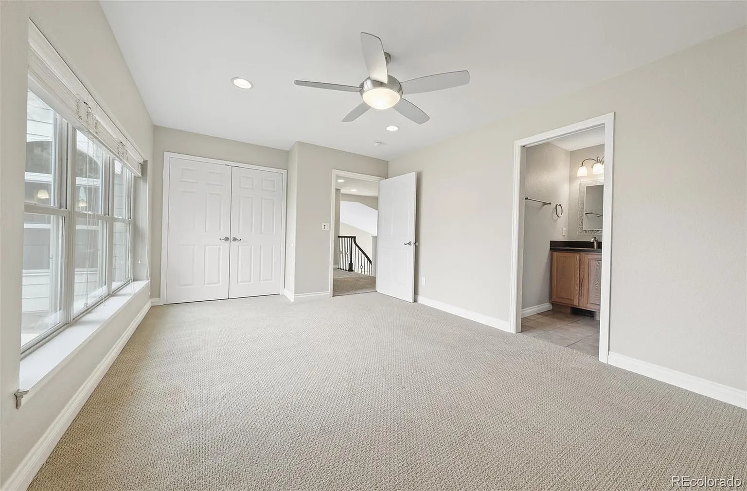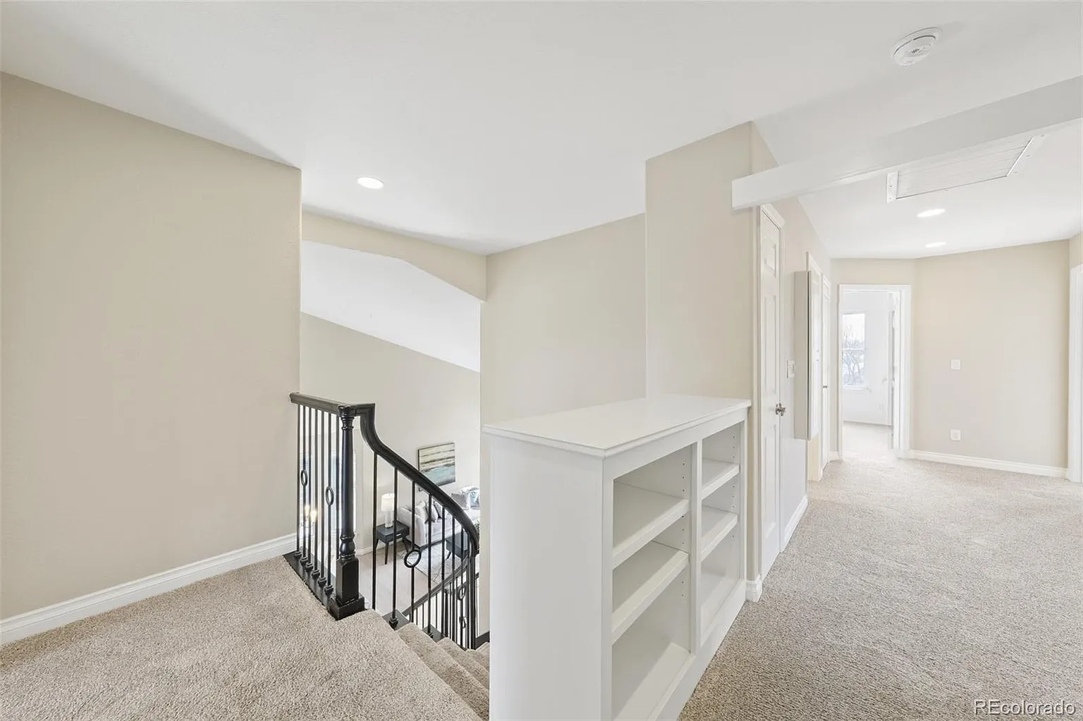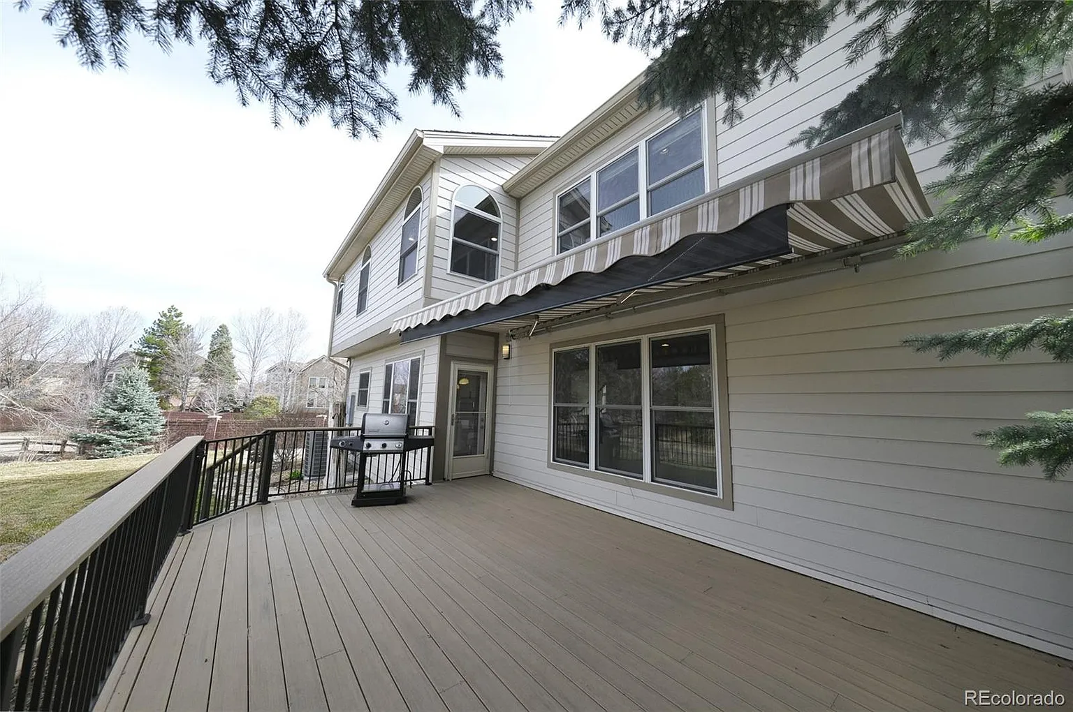 Upstairs, 4 beds/3 baths plus huge lot: luxurious primary with brand-new 5-piece bath, bedroom 2 with ensuite bath perfect for au pair/guest suite; 2 beds share hall bath with 2 sinks; large loft (easy 5th bedroom), laundry room. The expanded, low-maintenance deck with retractable awning overlooks open space and trail, plus the large backyard features a basketball court.