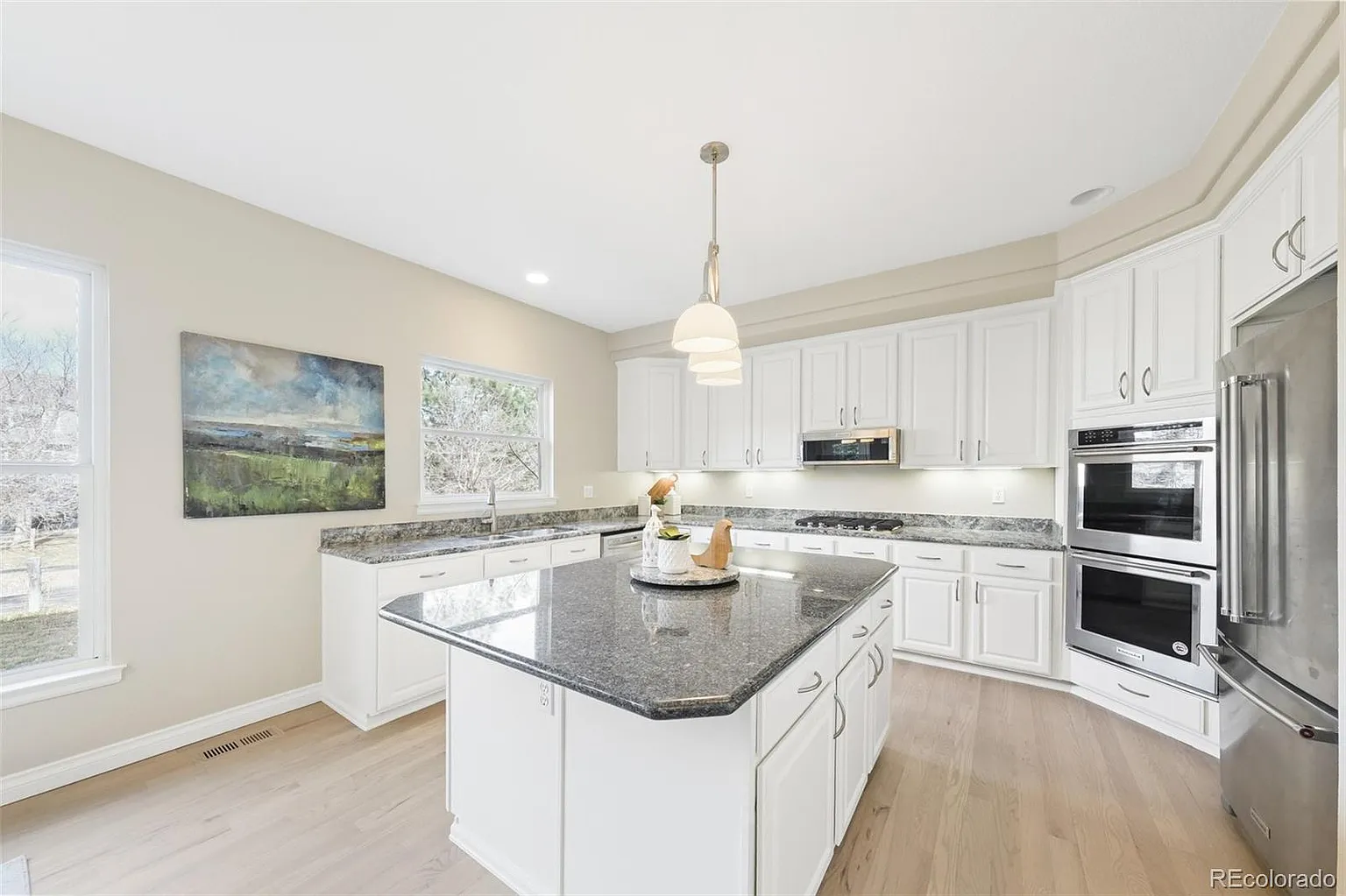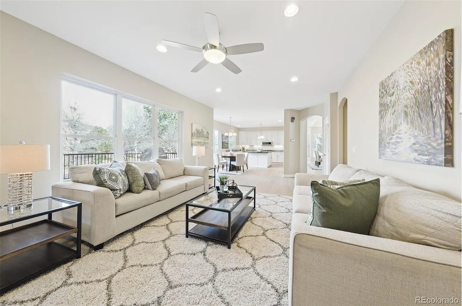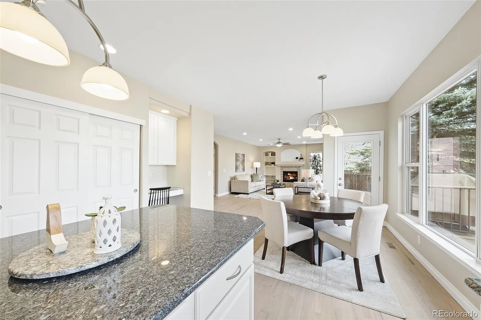 PERFECT 4 bd/4ba plus loft home with dream Golf/Tennis location! This spacious home is lovingly maintained with pride of ownership and perfect for quiet evenings or large gatherings. The kitchen offers a 5-burner gas cooktop, double ovens, a huge pantry, large island, flowing into nook and family room with a gas fireplace. The vaulted formal living and dining areas are elegant and open. Former laundry on main floor can serve as a quiet home office, mudroom, or pantry (custom shelves available).